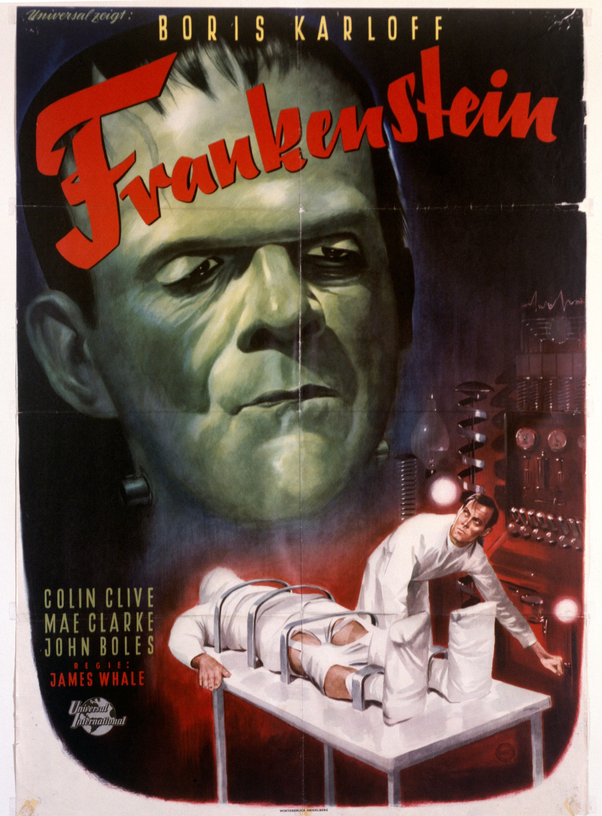 圖為1931年恐怖電影《科學怪人》的原版海報,由英國導演詹姆斯惠爾(James Whale)執導。