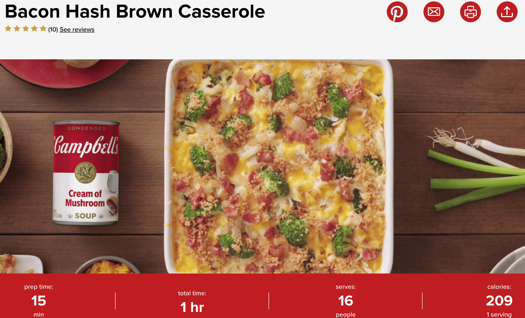 金湯寶同時為了吸引散戶消費者購買,於其官網上放了200份左右的食譜,包含各種用金湯寶產品烹飪的料理。這些食譜亦能透過Tastewise數據分析,將內容更改為現今消費者常使用的字詞,有效連結目標消費者。