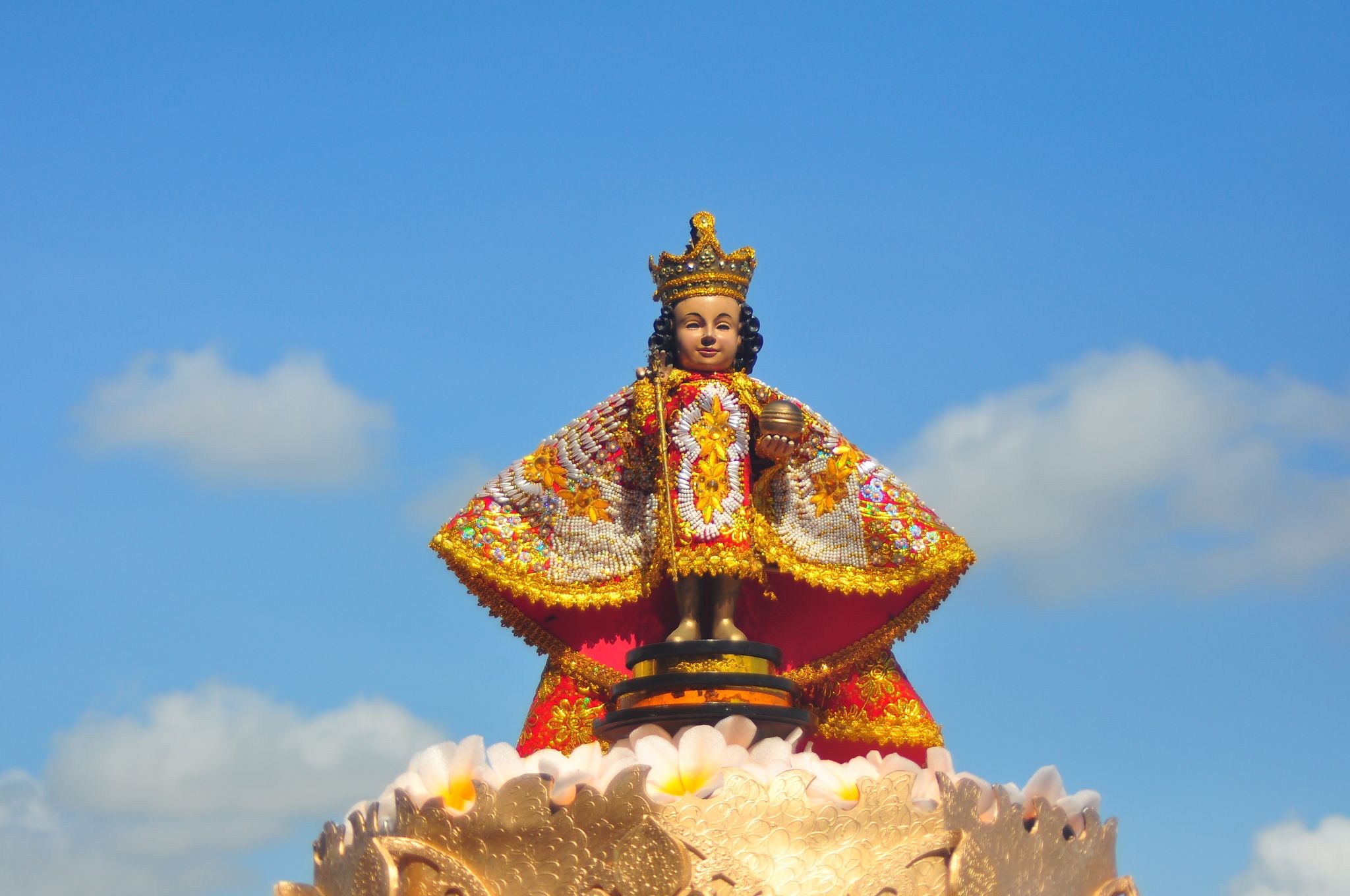 這些活動不僅用樂舞、戲劇或遊行形式,在街頭展演,訴說百年前的部落故事,也同時紀念城市的守護者「聖嬰」。西元1521年,環遊世界的葡萄牙航海家麥哲倫(Fernando deMagellanes)登陸宿霧島,並贈送酋長夫人一尊木雕耶穌基督聖嬰像充作受洗之禮,就此帶進天主教信仰,這也是宿霧聖嬰節的精神所在。