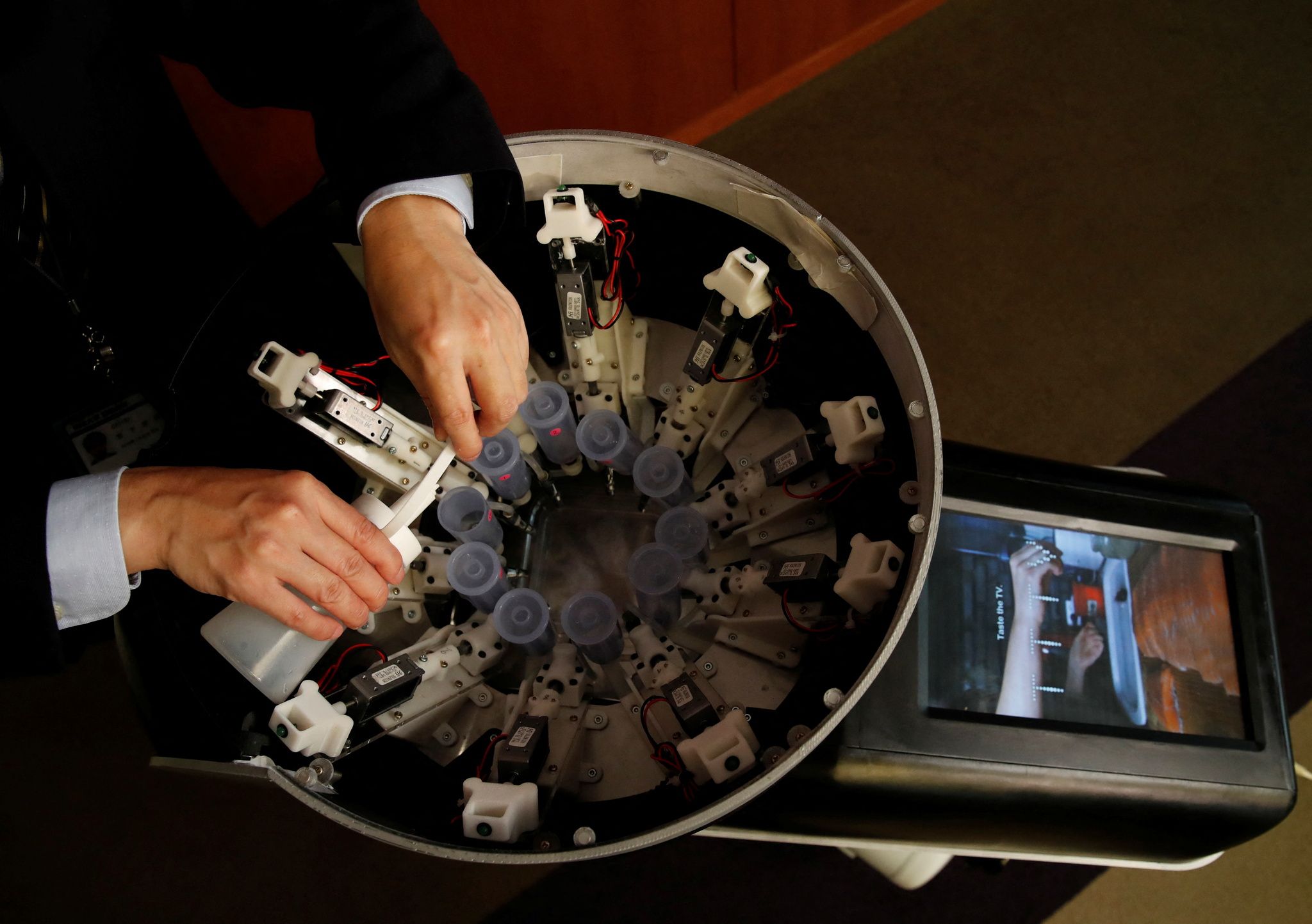 這種品嘗電視是由10個味道噴罐組成一個轉盤,而不同味道噴罐的組合可以創造出不同食物的味道。將這些味道噴在電視螢幕的「衛生薄膜」(hygienic film)上面,並移動到螢幕適當位置,以供觀眾舔嚐。