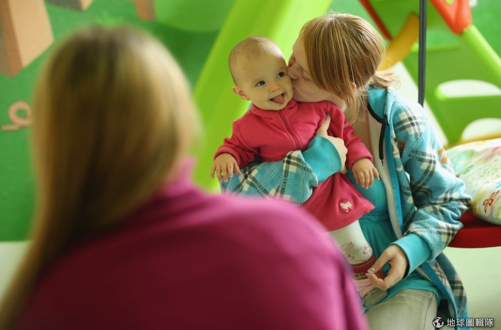 11個月大的露西被媽媽親親抱抱好開心!圖片來源:Sean Gallup/Getty Images