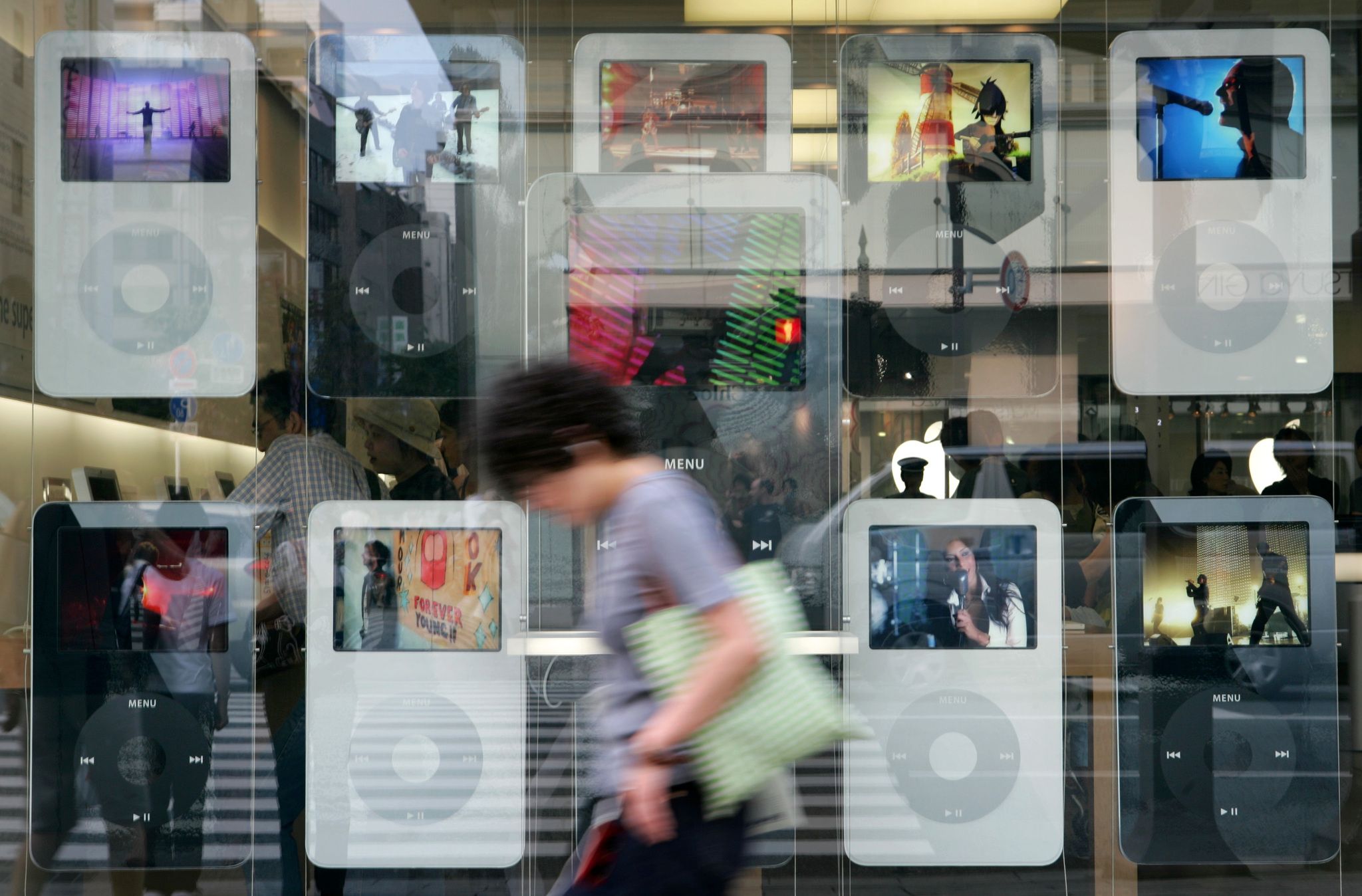 照片攝於2006年,一位女性走過了位於日本東京的Apple Store。