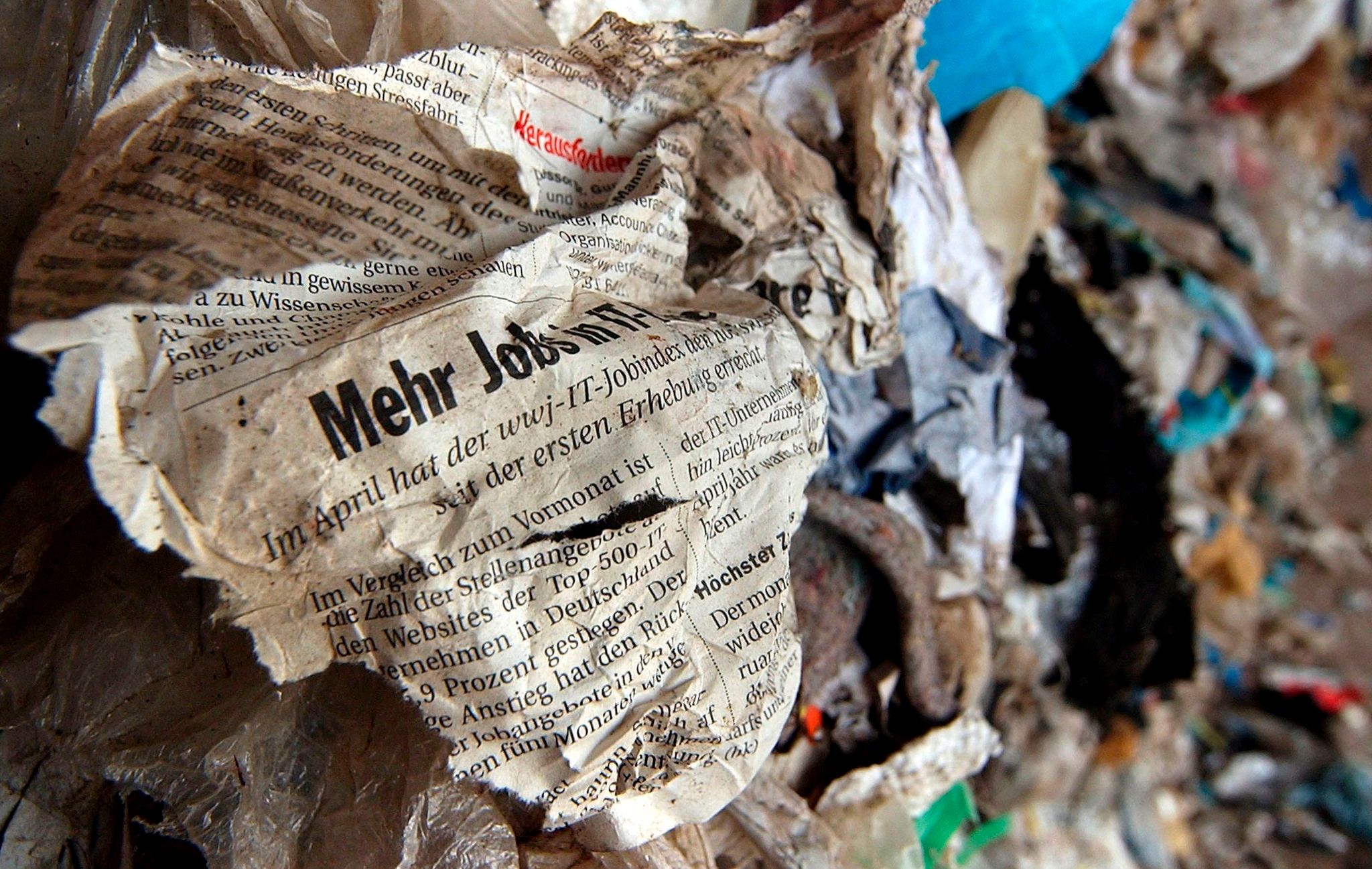 圖攝於2006年12月13日,前蘇聯軍營製造的垃圾堆中留著一張德國的報紙。