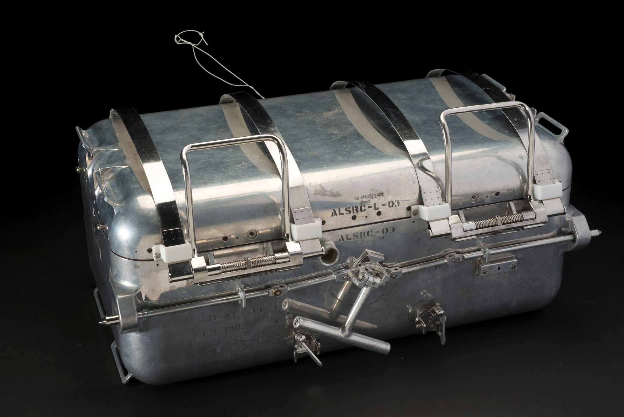 圖為特製的阿波羅登月計畫樣本保存容器(The Apollo Lunar Sample Return Container),內部可以保持真空狀態,曾用在阿波羅11號的登月任務中。