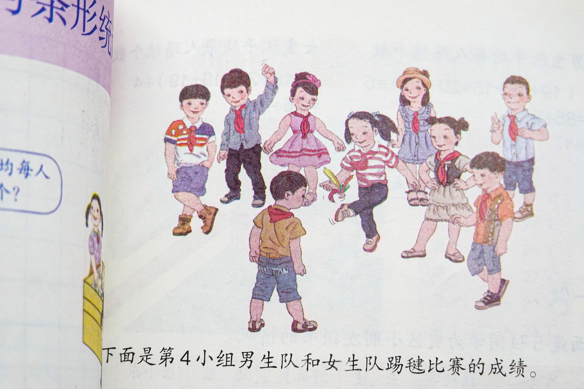 圖為人教版小學數學教材插圖,網友認為插圖中的人物眼神、姿勢怪異,醜化中國人。