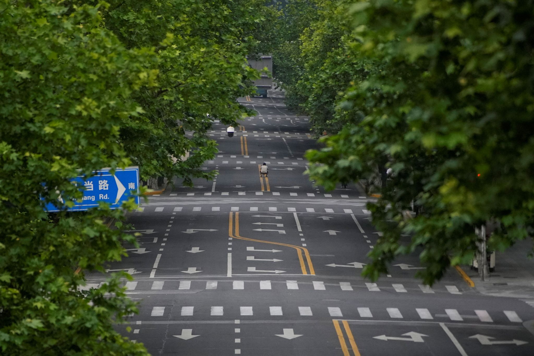 上海因封城,街道上空無一人。