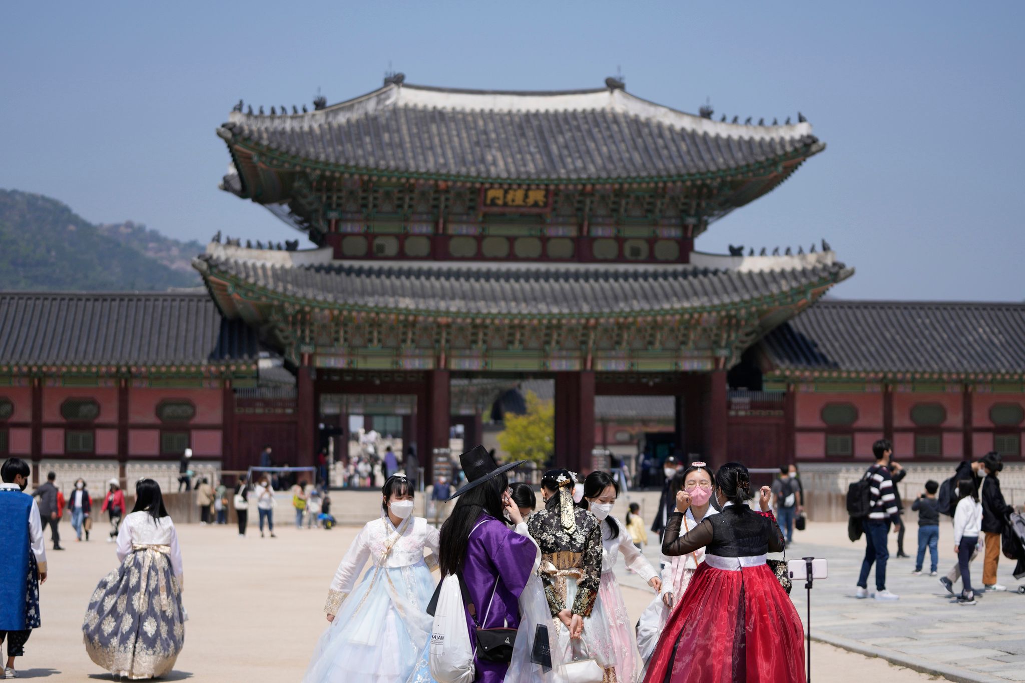 南韓是亞洲四大經濟體之一,工安意外卻頻繁發生。COVID-19疫情期間,旅客配戴口罩參觀首爾文化地標景福宮。圖攝於2022年4月。