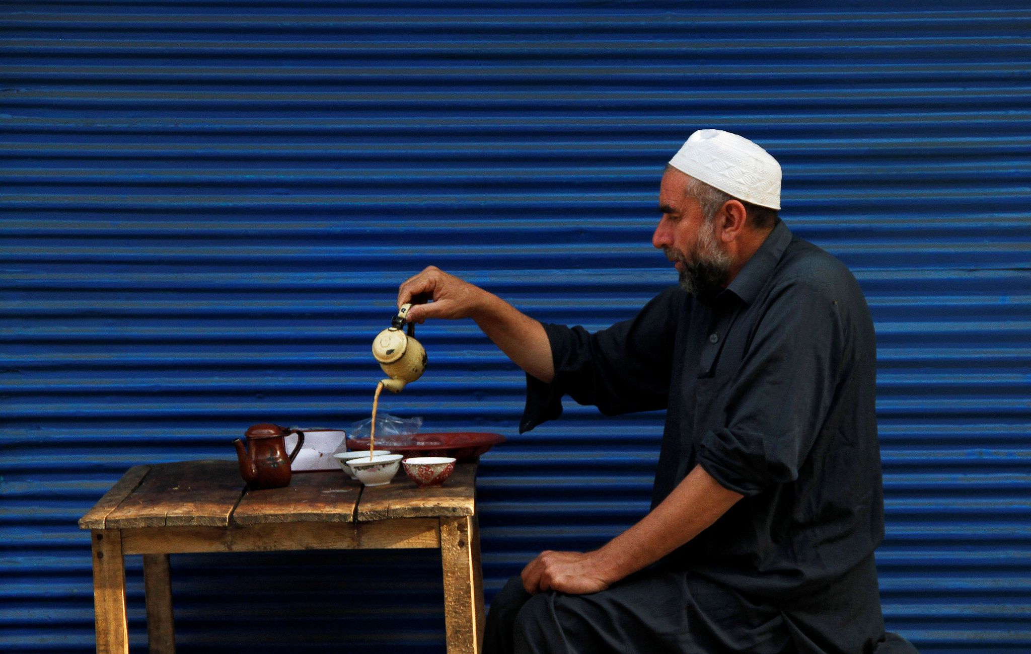 一名巴基斯坦男子優雅地倒著茶,開啟他美好的一天。圖攝於2019年9月,巴基斯坦靠近阿富汗邊境區的白沙瓦(Peshawar)。