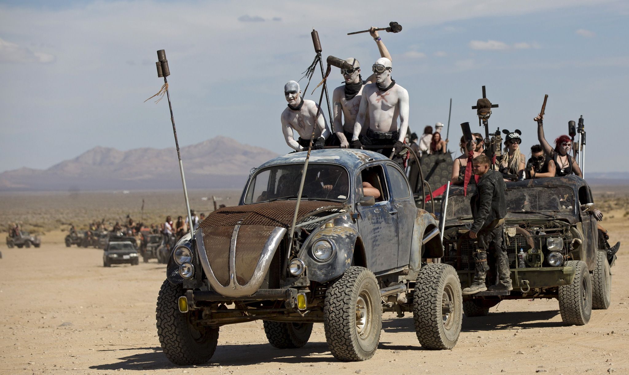 《瘋狂麥斯》的電影愛好者穿戴戲服、開著改裝車,齊聚於美國加州,舉辦「廢土周末」(Wasteland Weekend)的影迷盛會。圖攝於2015年9月。