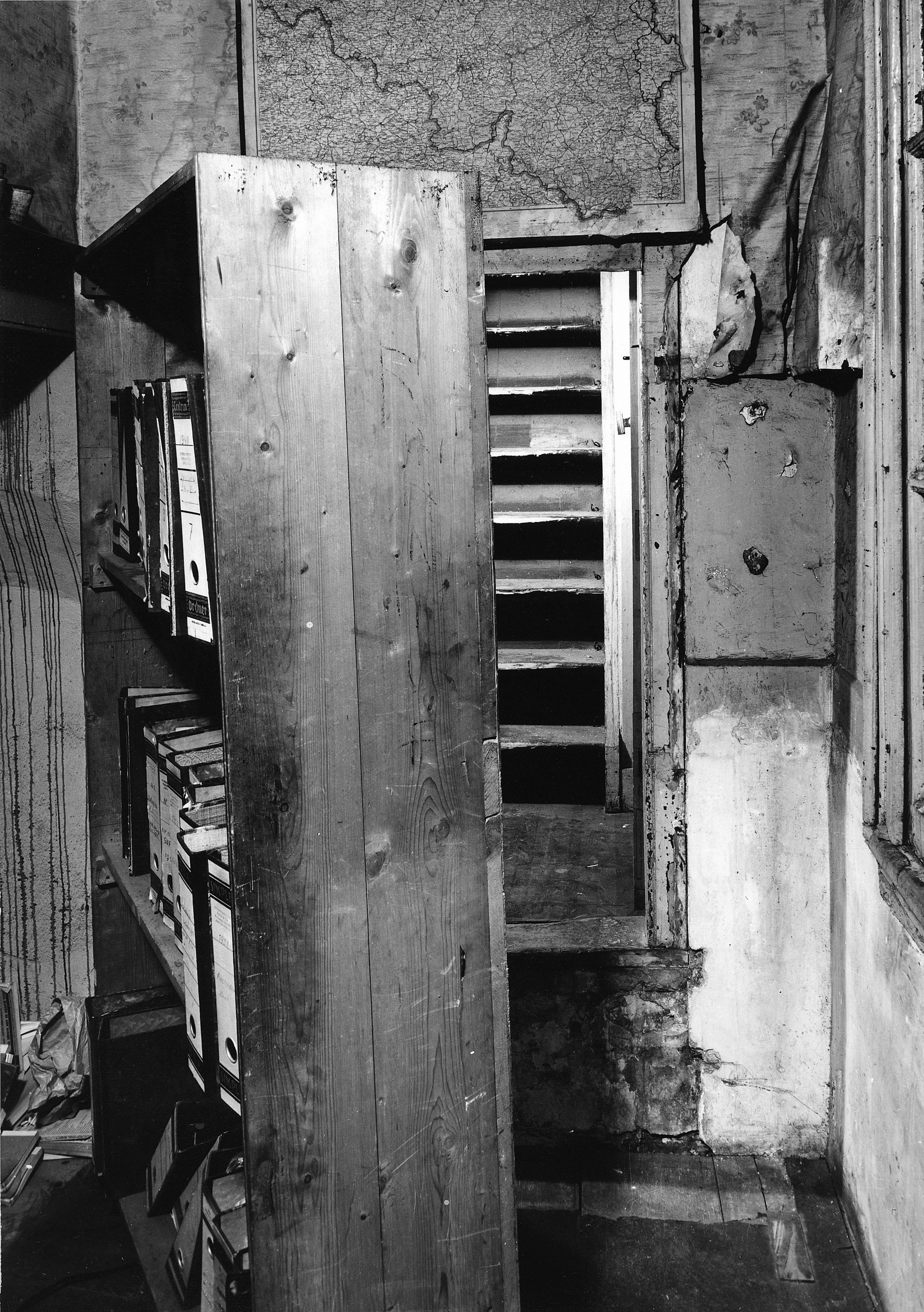 圖為安妮與她的家人躲避納粹長達2年的閣樓密室,就在這個書架之後。圖攝於1955年。