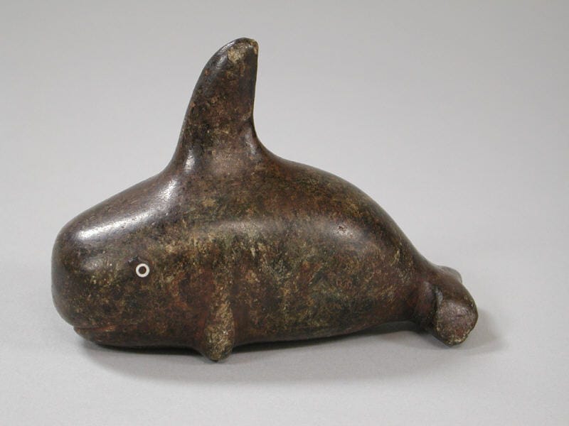 圖為收藏於美國紐約大都會藝術博物館(Metropolitan Museum of Art)的鯨魚石雕,為美國原住民丘馬仕人(Chumash)於16、17世紀所製作。