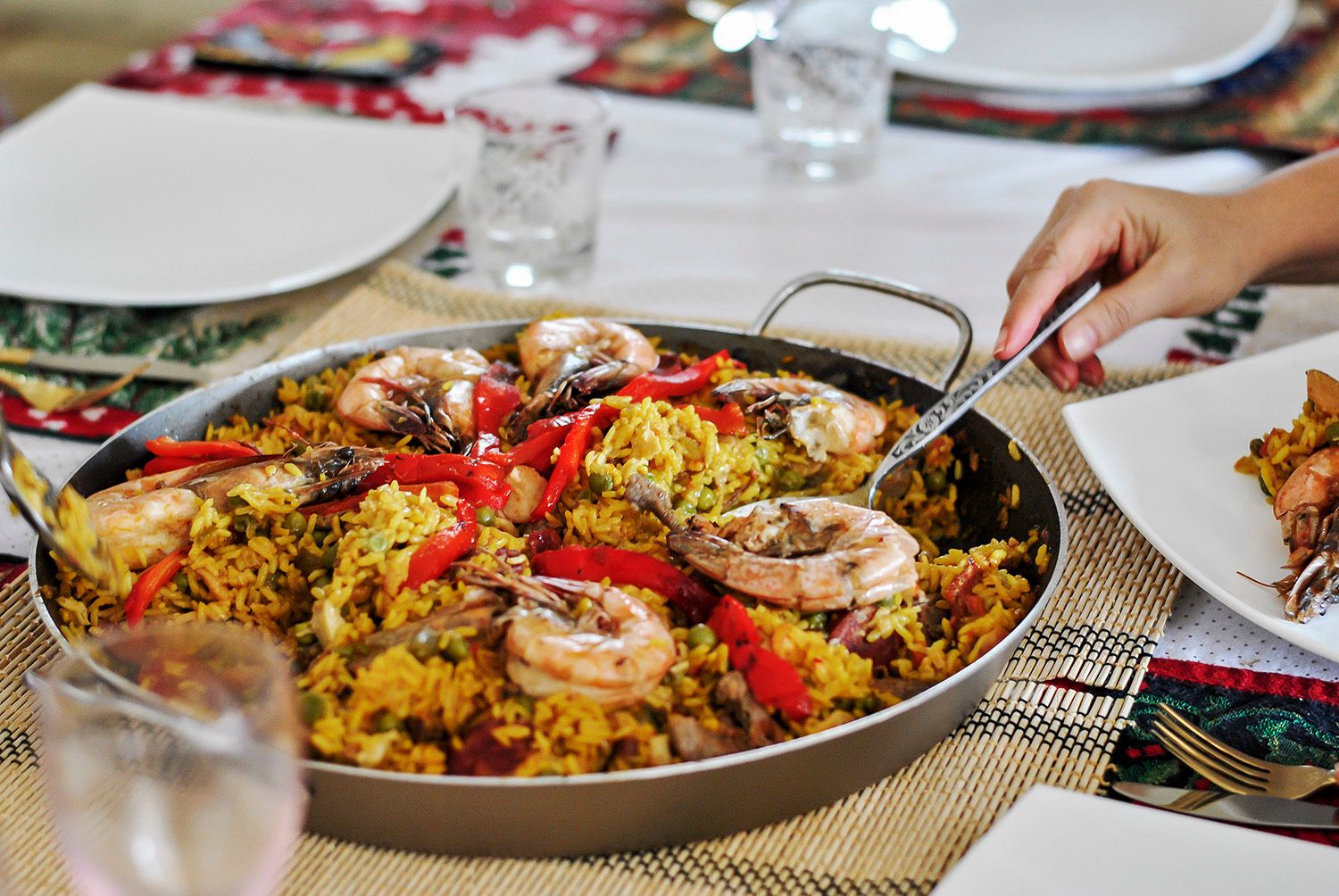 Paella 為西班牙大鍋飯,源於西班牙瓦倫西亞(Valencia),為當地語言「鍋」的意思。基本的材料為米、橄欖油和番紅花,再配以各種海鮮或肉,例如蝦、魷魚管、貽貝、蛤蜊、紅辣椒、洋蔥、辣椒粉、藏紅花、大蒜、西班牙香腸、豬肉和雞湯⋯⋯因有大量海鮮,常譯為西班牙海鮮燉飯,但傳統瓦倫西亞大鍋飯是以兔肉烹製。