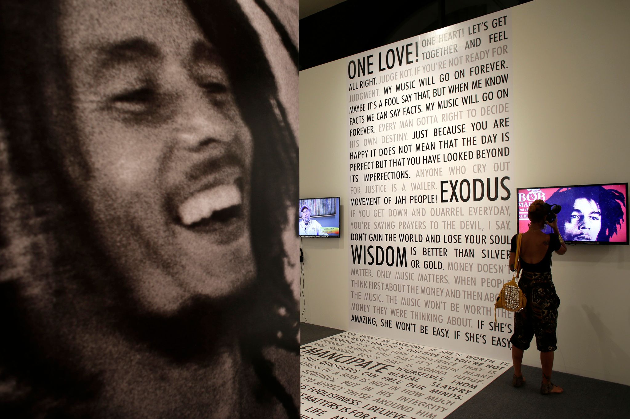 雷鬼樂之父巴布‧馬利(Bob Marley)將愛與和平、反戰、種族平等理念以音樂傳唱至全世界。圖為2013年,在邁阿密HistoryMiami博物館舉辦的Bob Marley Messenger展覽。