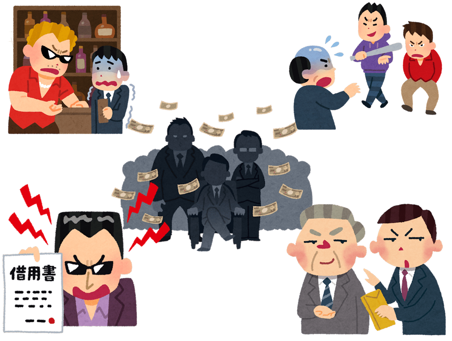 黑道的收入來源,主要靠組員和幹部以勒索、非法賭場或是毒品買賣的收入,向上繳納上納金(會費)維持。但是自《暴力團對策法》與《暴力團排除條例》實施,明訂不能收保護費、銀行不得與黑道有所往來後,黑道日益走向「沒錢途」的陌路。對於「我不想要成為黑道,但我想要輕鬆地賺錢」的年輕人,準暴力團會以新人研修的名義洗腦並灌輸他們錯誤的金錢觀,成了一條引領他們進入這條不歸路。