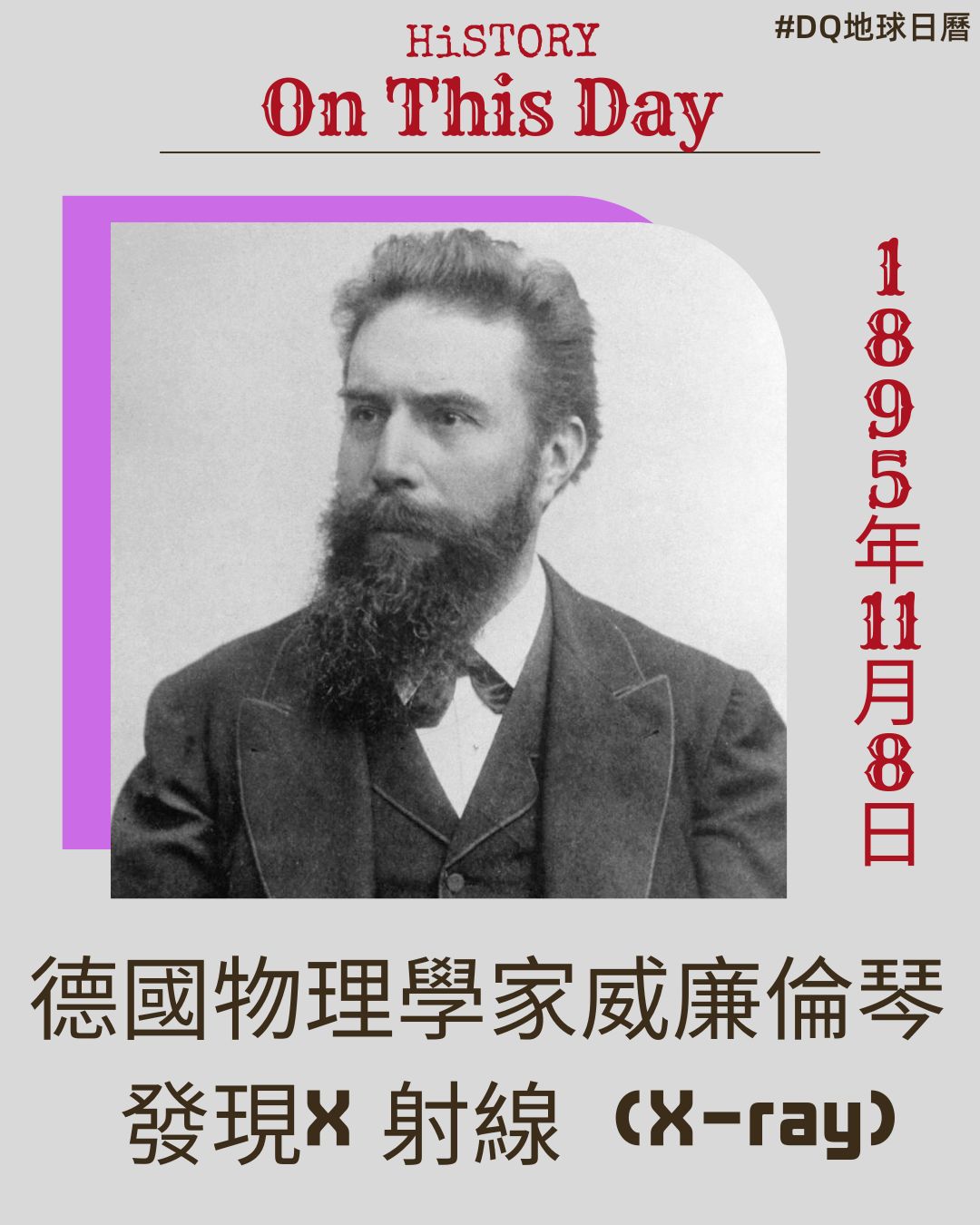 1895年11月8日|德國物理學家威廉倫琴,發現X射線