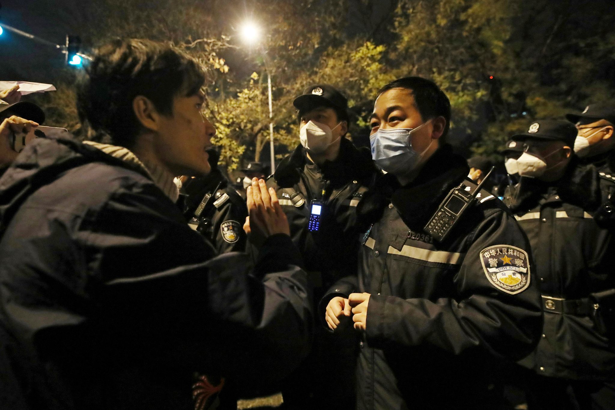 歐新社 / 達志影像null警察到場與示威民眾溝通(北京,美聯社)