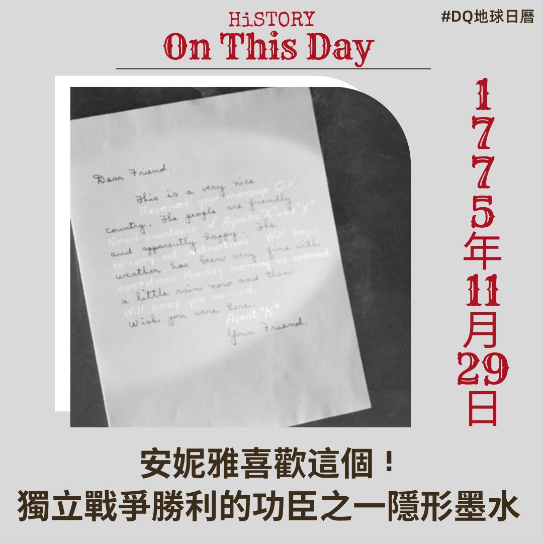 1775年11月29日|美國獨立戰爭勝利的功臣之一:隱形墨水