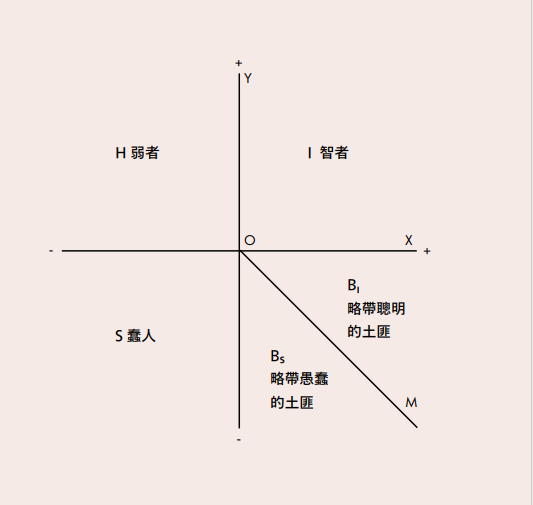蠢人基本定律把人類分成四大類別:弱者(the helpless)、智者(the intelligent)、土匪(the bandit)和蠢人(the stupid)。眼尖的讀者很快就會發覺,這四類正好對應 H、I、B、S 四個象限。