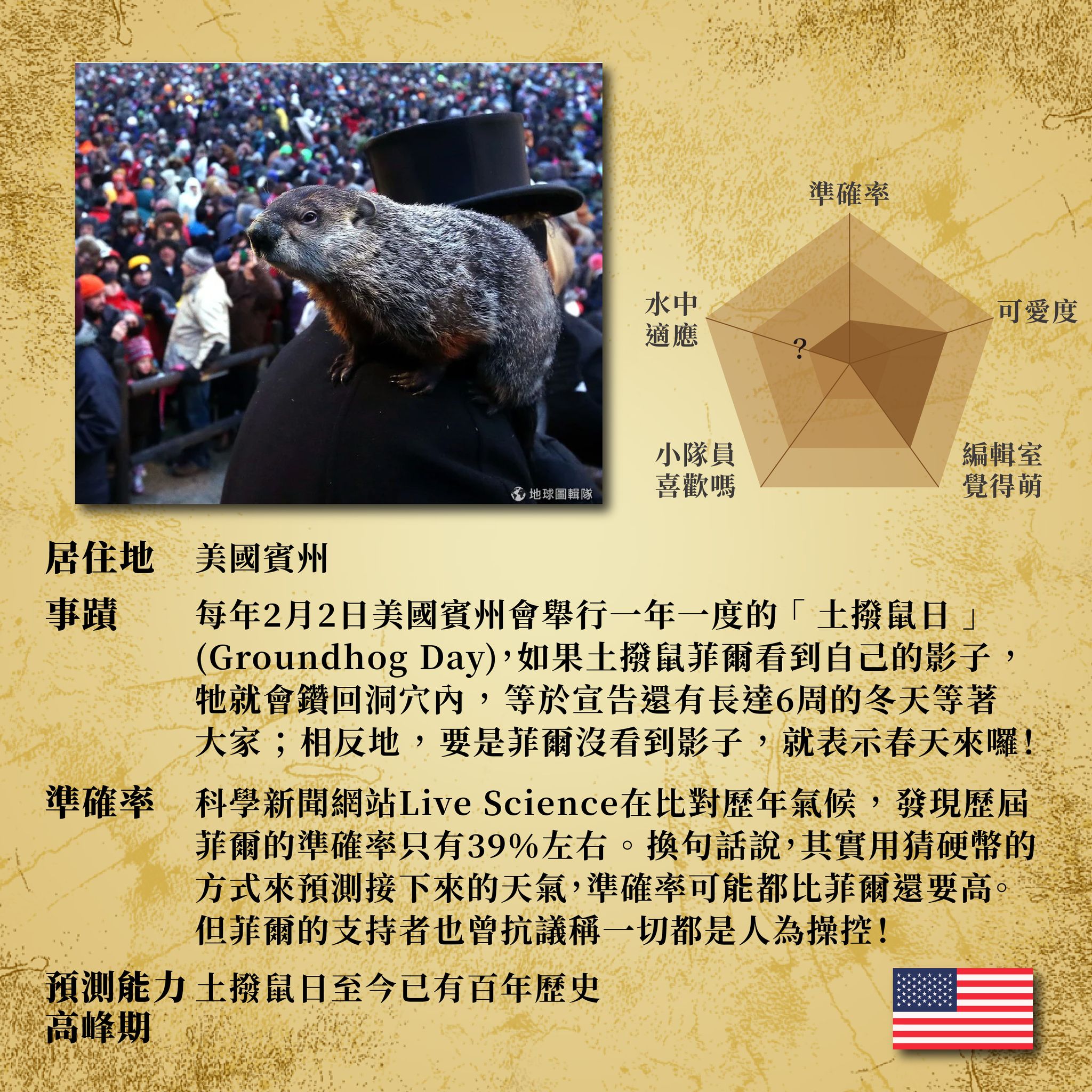 ▲一年一度的土撥鼠日(Groundhog Day)已經有超過 130年的歷史。每到這一天,數以千計的人就會來到美國賓州小鎮旁蘇托尼(Punxsutawney),看看剛結束休眠的土撥鼠菲爾(Phil)有沒有看到自己的影子,如果土撥鼠能看到自己的影子,那麼北美的冬天還有 6周才會結束;如果牠看不到影子,便諭示了春天將會在不久後來臨。
