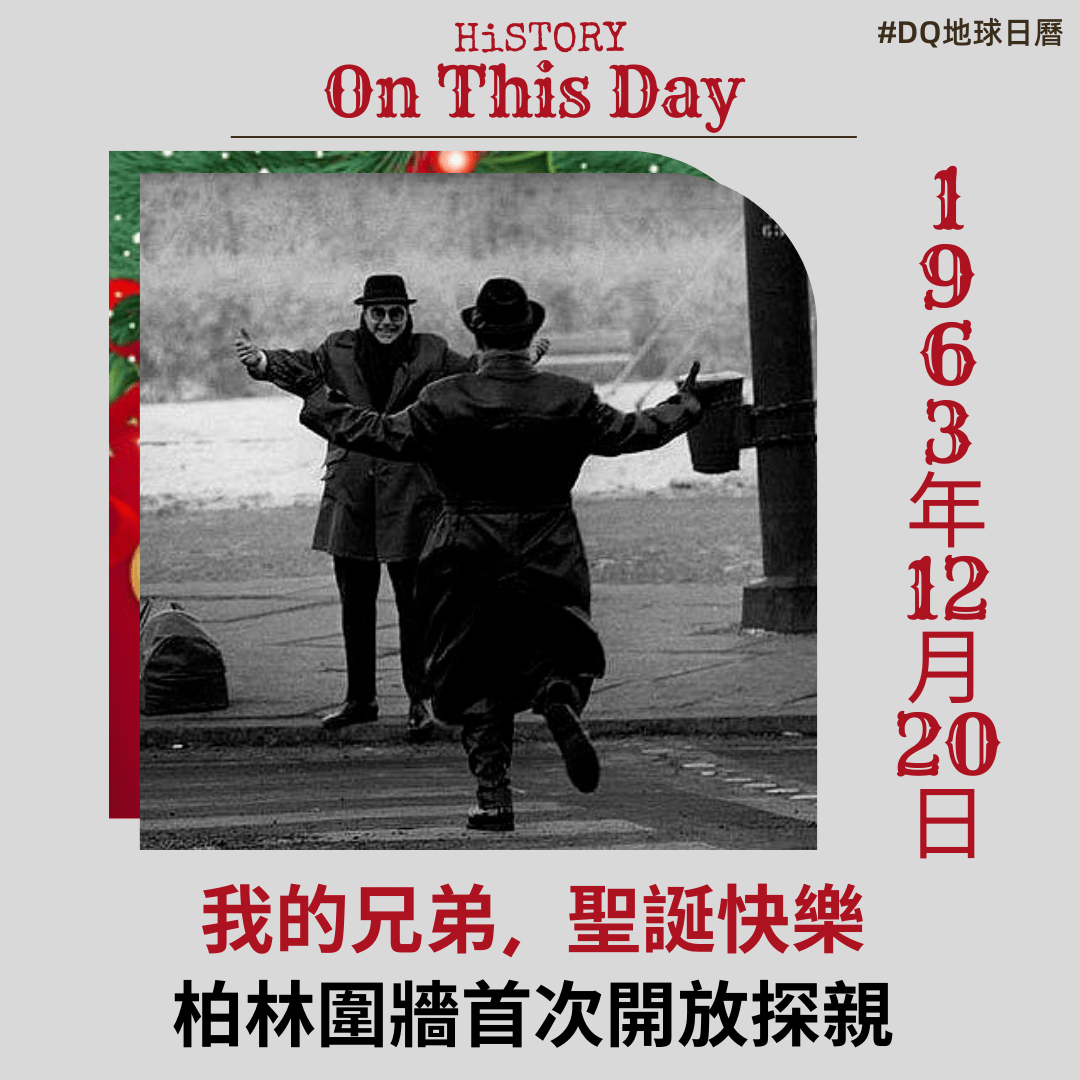 1963年12月20日,在柏林圍牆築起後的兩年,首次在聖誕節期間開放探親。西德人允許申請佳節通行證,探訪住在東德的家庭成員,但僅限有血緣關係的親人,這一天,他們久違地擁抱了彼此,得到了聖誕節該有的家庭溫暖。