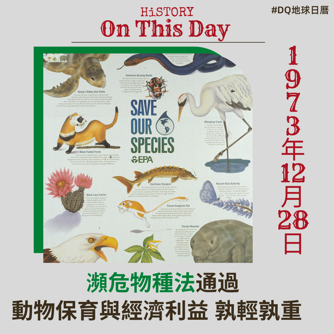 1973年12月28日,《瀕危物種法》(Endangered Species簡稱:EA)在尼克森總統的呼籲下通過,旨以保護或是正面臨滅絕危機的物種,對美國來說是極具意義的保護法,也被稱為「美國最強大的環境法規之一」,同時也是世界上最強大的物種保護法。