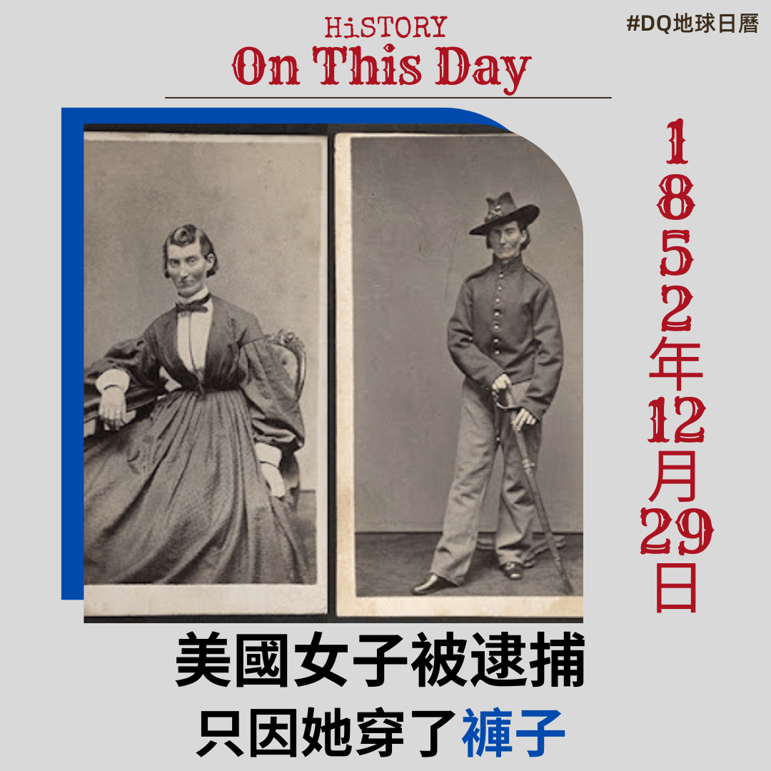 1852年Emma Snodgrass因穿著褲子而被警方逮捕。