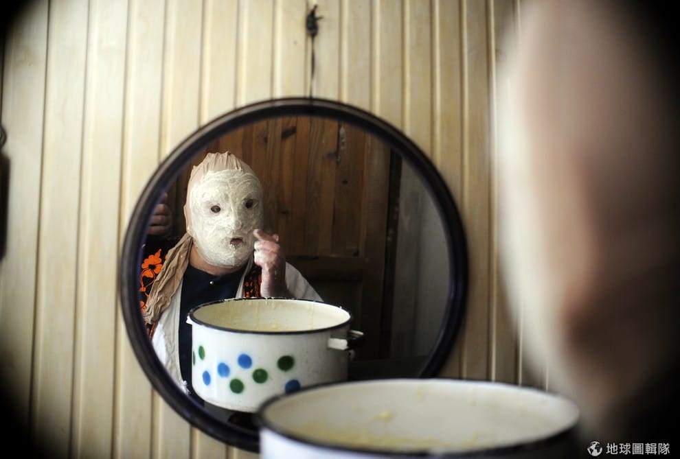 維夫查尼的村民塗黑臉部,表演異教信仰的舞蹈。