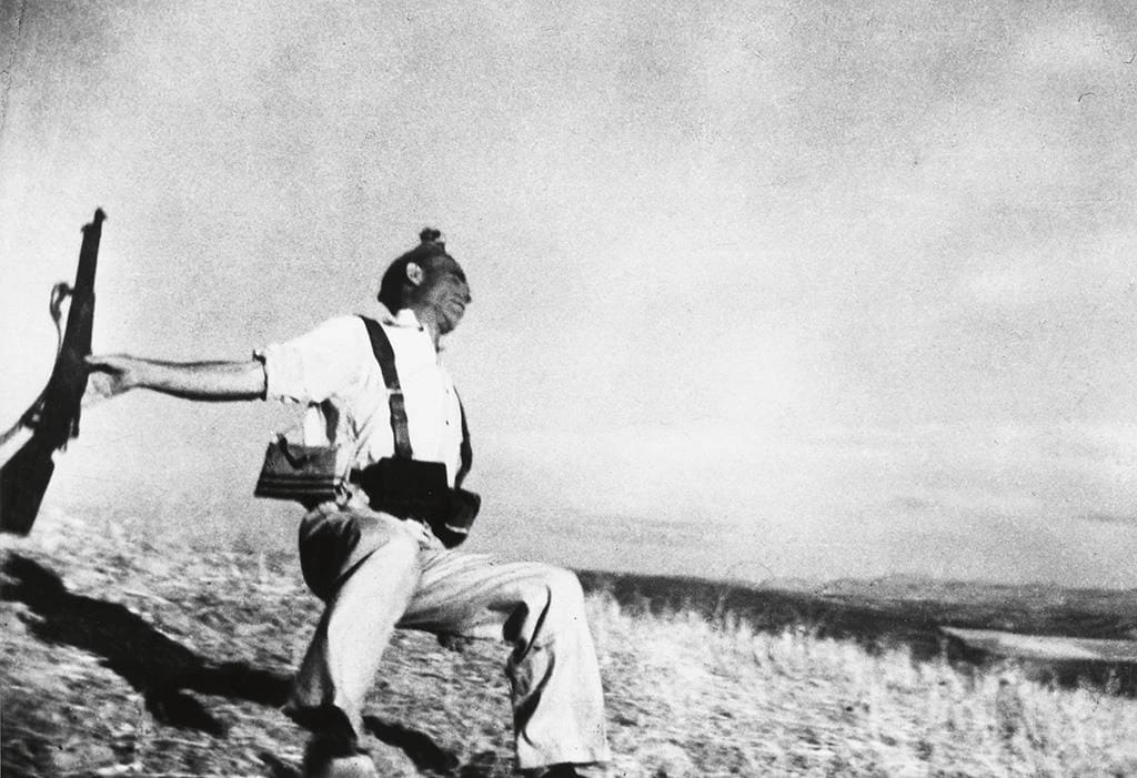 他的無所畏懼,是將攝影放在自己的生命之前。1936年,他和搭檔大衛·西摩 (David Seymour )衝到西班牙內戰的前線,拍下了被公認最偉大的戰地攝影作品-《倒下的士兵》(Death of a Loyalist Soldie)。