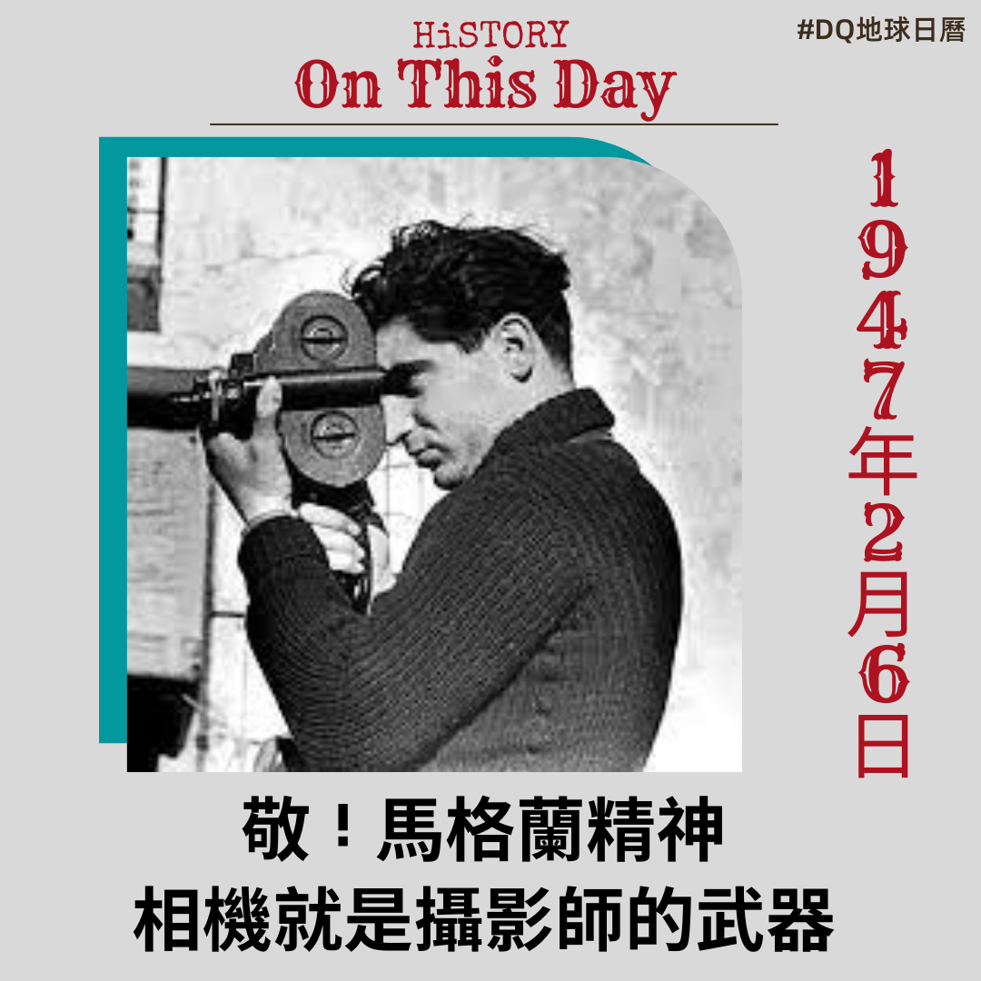 1947年2月6日,以羅伯特·卡帕(Robert Capa)為首的攝影師們,在巴黎創立了全球第一間自由攝影合作組織的馬格蘭攝影通訊社,他們用相機捕捉到每個戲劇性的瞬間,同時也用照片保留了歷史的痕跡。