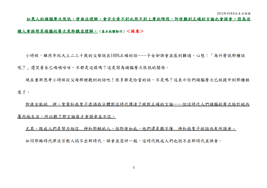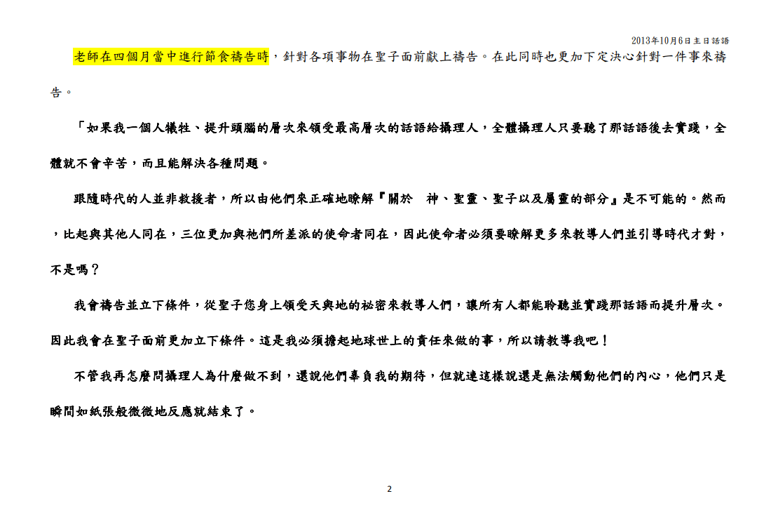 我(入教)那個時代,鄭老師是在獄中,所以講道的內容是以文字的方式出現。他們說這是鄭老師在獄中寫下來的。但那個數量真的是多到無法想像,每週三、週日、徵五、凌晨……感覺他好像整天都在寫這些內容,讀都讀不完,也不知道他怎麼寫出來的。當時,以文字寫下來的「話語」,內容很有感染力,會教導我們如何過「有愛的生活」,如何愛聖三位……等。
