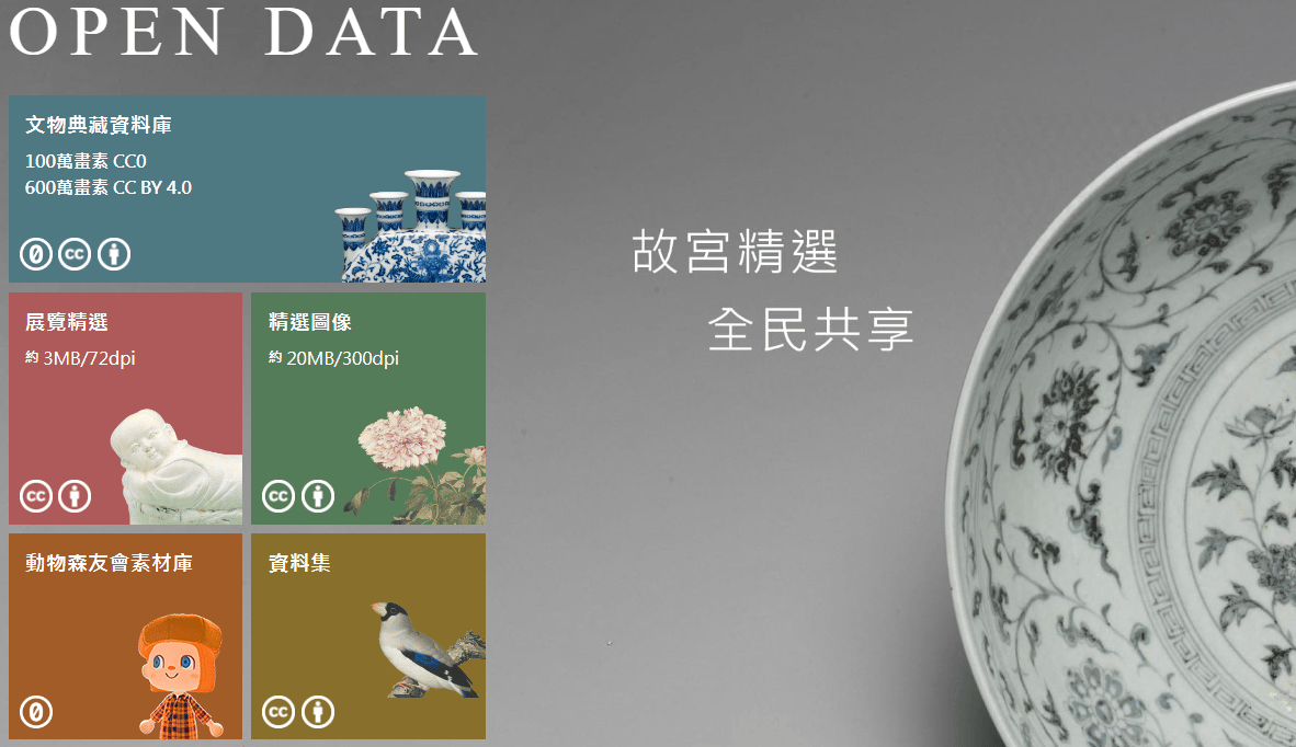 圖為國立故宮博物院的OPEN DATA專區網站。Open Data專區所提供圖像無需申請,不限用途,不用付費即可公開使用,但不包括專利權及商標權。