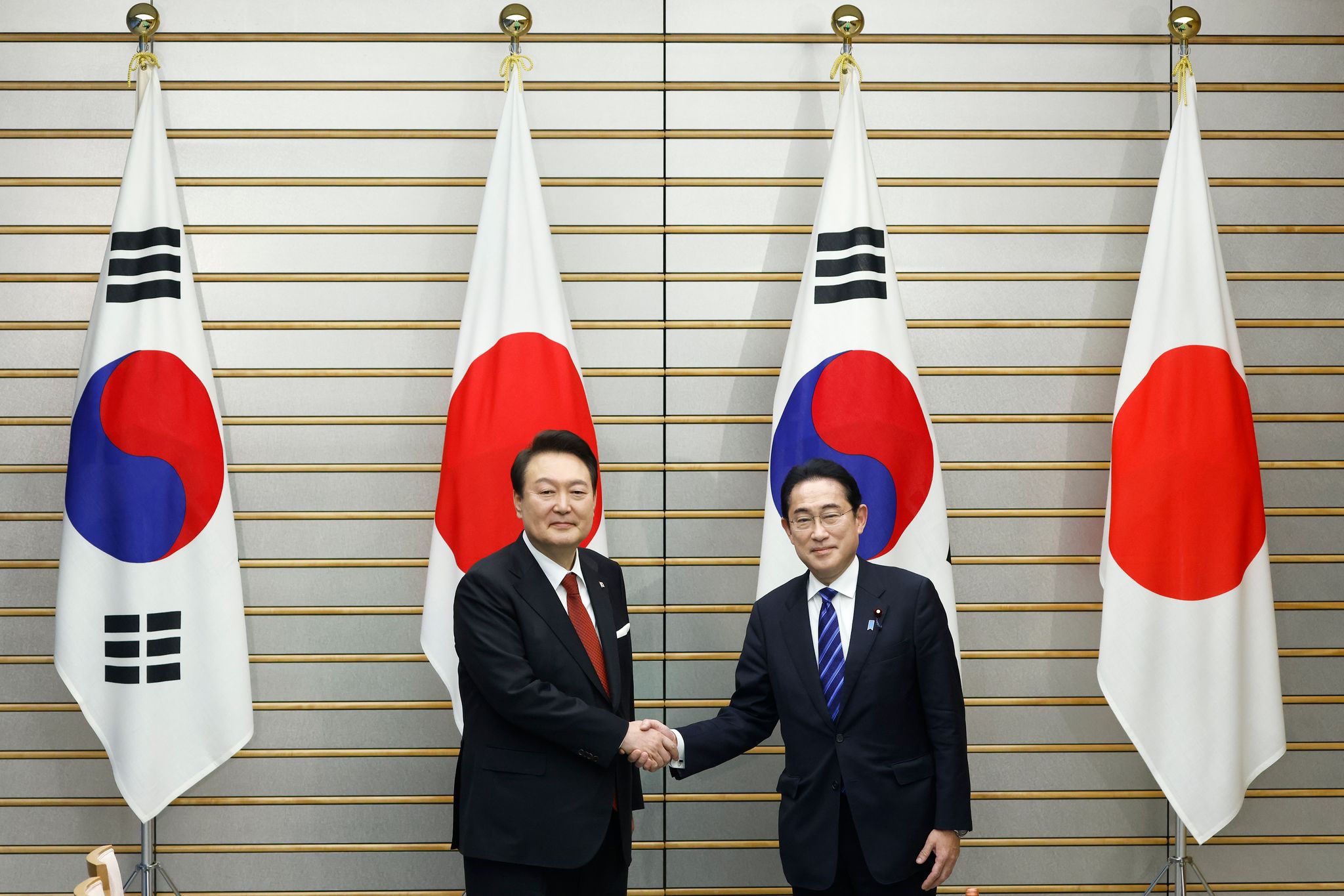 3月16日,日本與南韓兩國領導人時隔12年之久舉行峰會。日本首相岸田文雄(Fumio Kishida)與韓國總統尹錫悅(Yoon Suk Yeol)於東京會面。