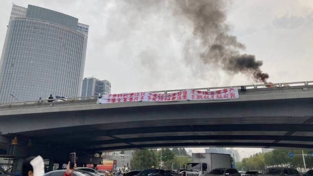 2022年10月13日,時值中共二十大前夕,彭立發在北京市中心的四通橋上,用布條道出了這些年來中國人民不敢說的話: