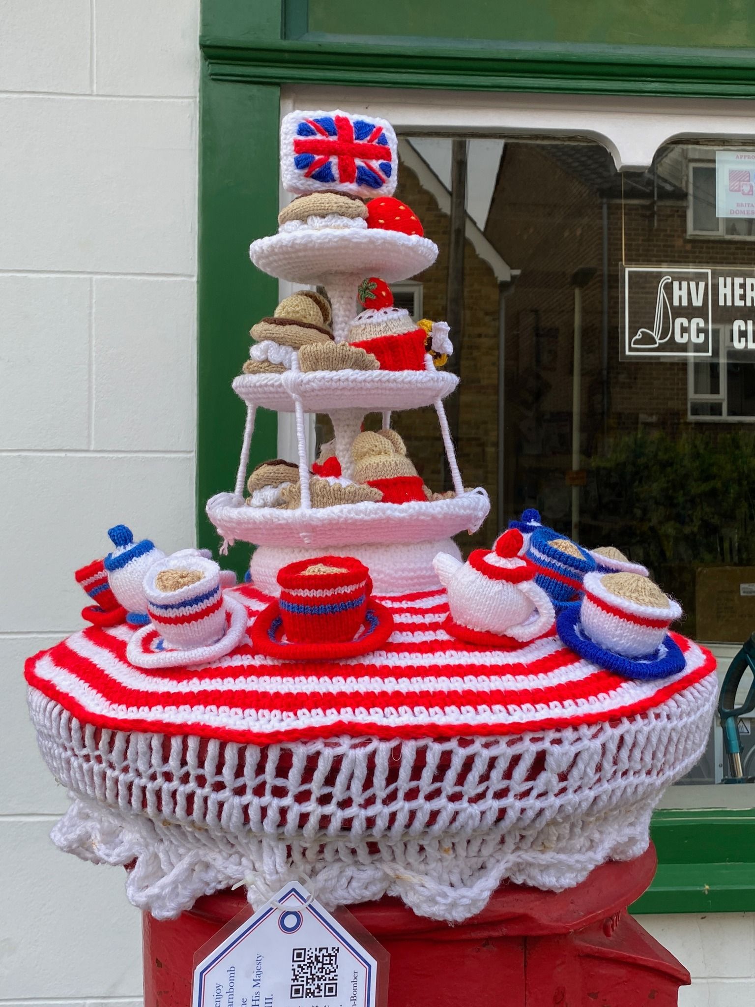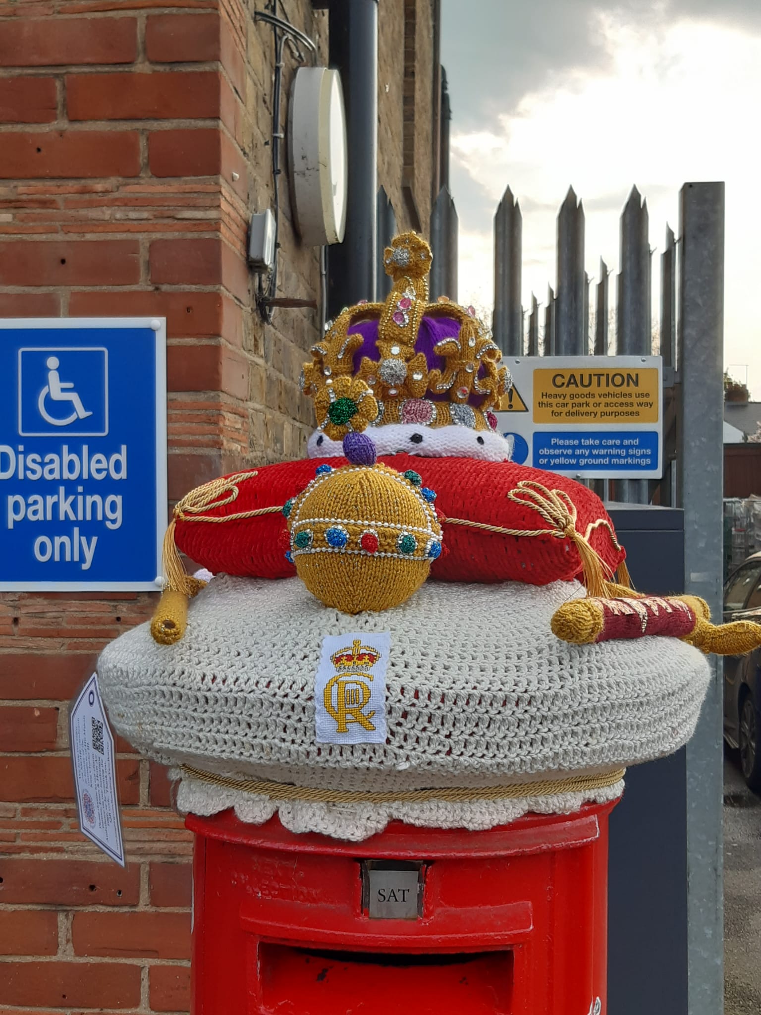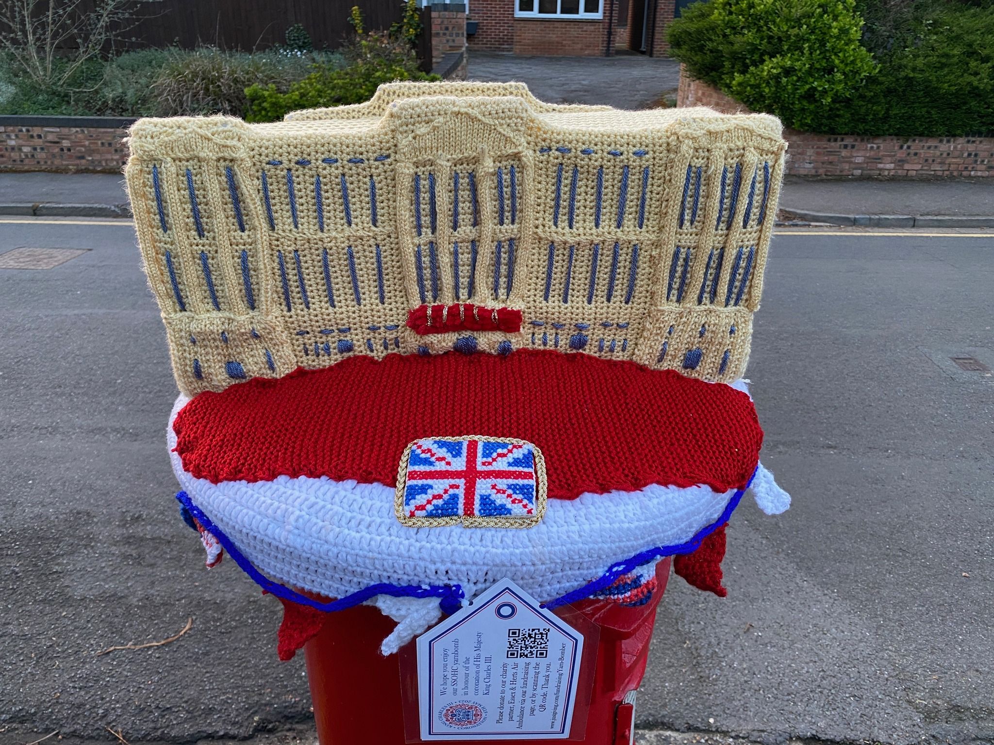 這場「加冕典禮」是由英國的一群「編織游擊隊」(Yarn Bombers)製作,這群針織愛好者組成哈特福工匠秘密協會(The Secret Society of Hertford Crafters),以英王加冕為主題,製作出各種精緻的勾針作品,趁著天黑時將作品安置於哈特福鎮(Hertford)和韋爾鎮(Ware)街頭的郵筒上。