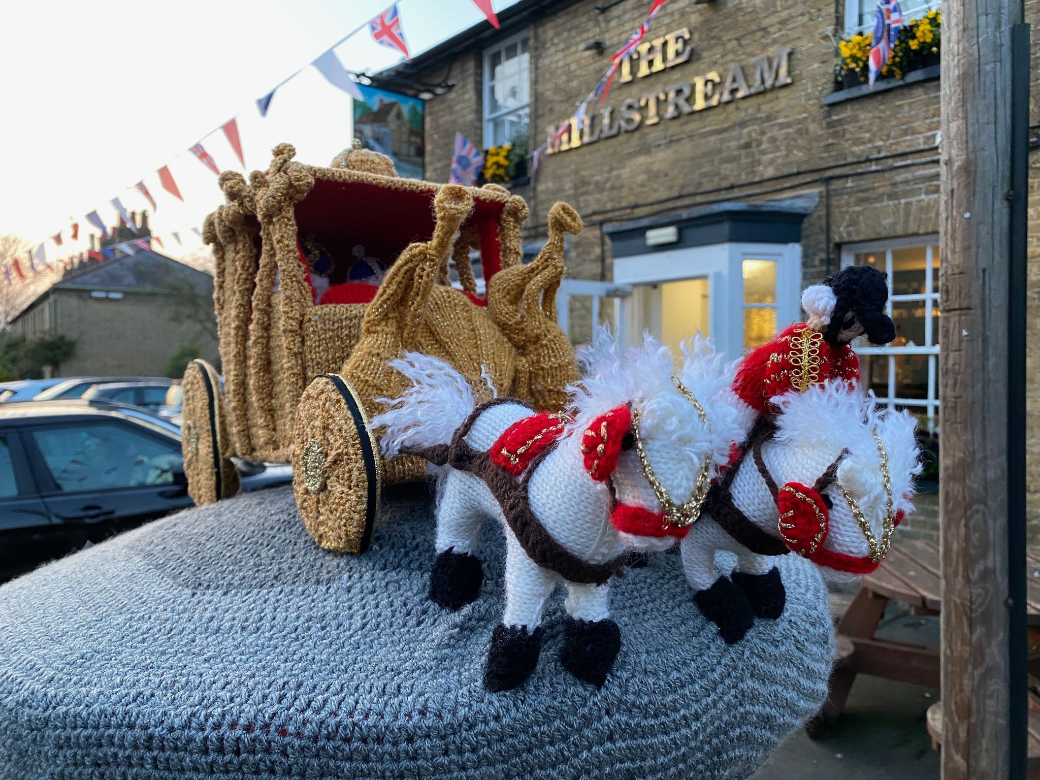 網友Yarn Bombers「編織游擊隊」以勾針製作出國王夫婦於加冕典禮時乘坐的黃金馬車,趁天黑時悄悄放上街頭。