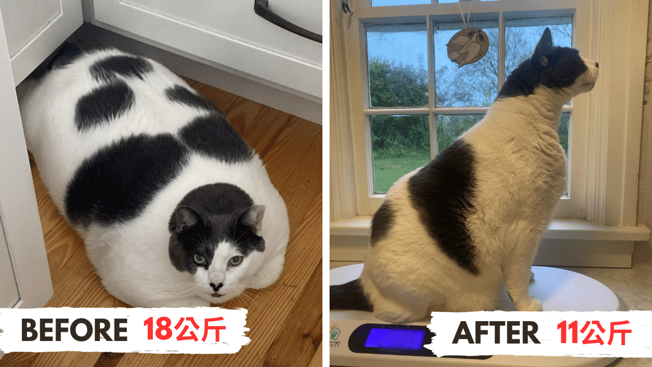 自去年,加拿大凱福特(Kay Ford)領養18公斤的短毛貓斑斑(Patches)後,他最常被問的問題應該已經變成「你家的貓『現在』幾公斤?」今年4月,福特在臉書上表示,斑斑的體重已經從原本的18公斤,減至11公斤,雖然離原訂減至8.5公斤的瘦身目標還有一段距離,但瘦身後的斑斑看起來更開心、更有活力。