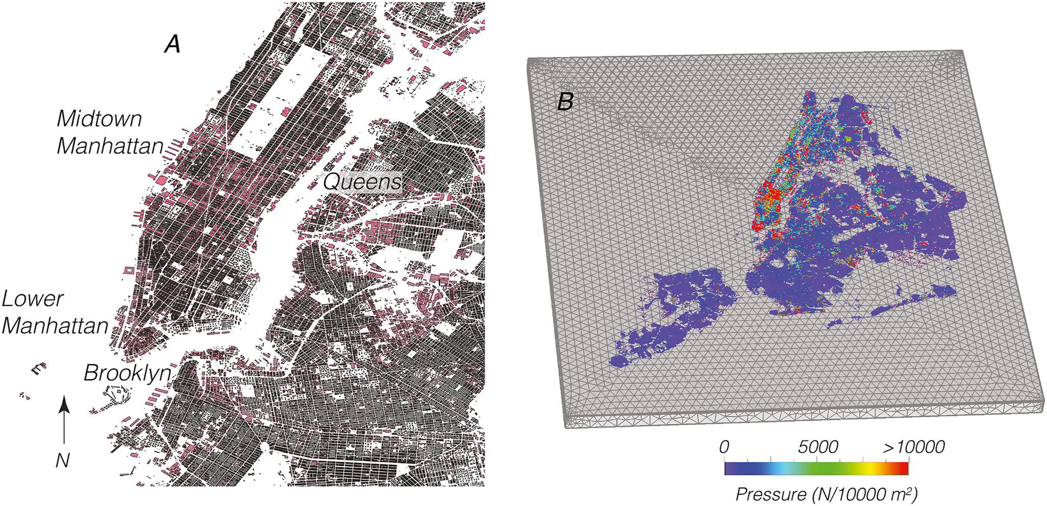 團隊模擬建築總重對紐約市地質的影響後,發現整個紐約市都在下陷,每年平均下降1~2毫米;其中布魯克林、皇后區以及曼哈頓的某些地區,更是以高於平均的速度下陷,最嚴重的地區每年下降的高度甚至高達4.5毫米!