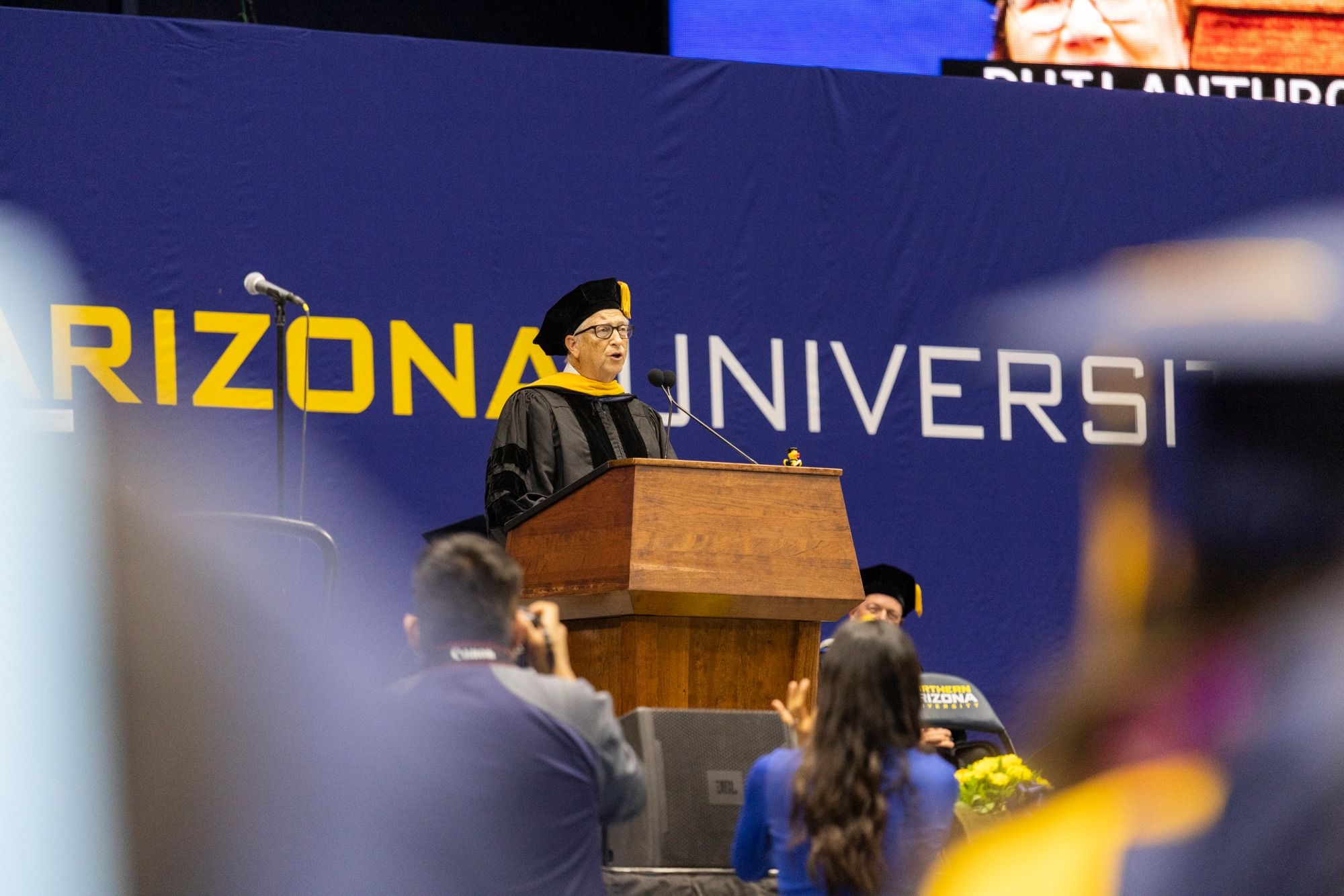 北亞利桑那大學邀請了微軟創辦人比爾蓋茲,現身畢業典禮致詞。比爾蓋茲並不常在大學畢業典禮中發表演說,但他每次在演講中提出的人生智慧,都會引發廣大迴響。在此之前,他曾於2007年在哈佛大學演講,另一次則是2014年於史丹佛大學致詞。