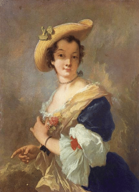 德國畫家克里斯蒂安.威廉.恩斯特.迪特里希(Christian Wilhelm Ernst Dietrich)的畫作〈戴帽子的女子〉(Portrait of a Woman with a Straw Hat)