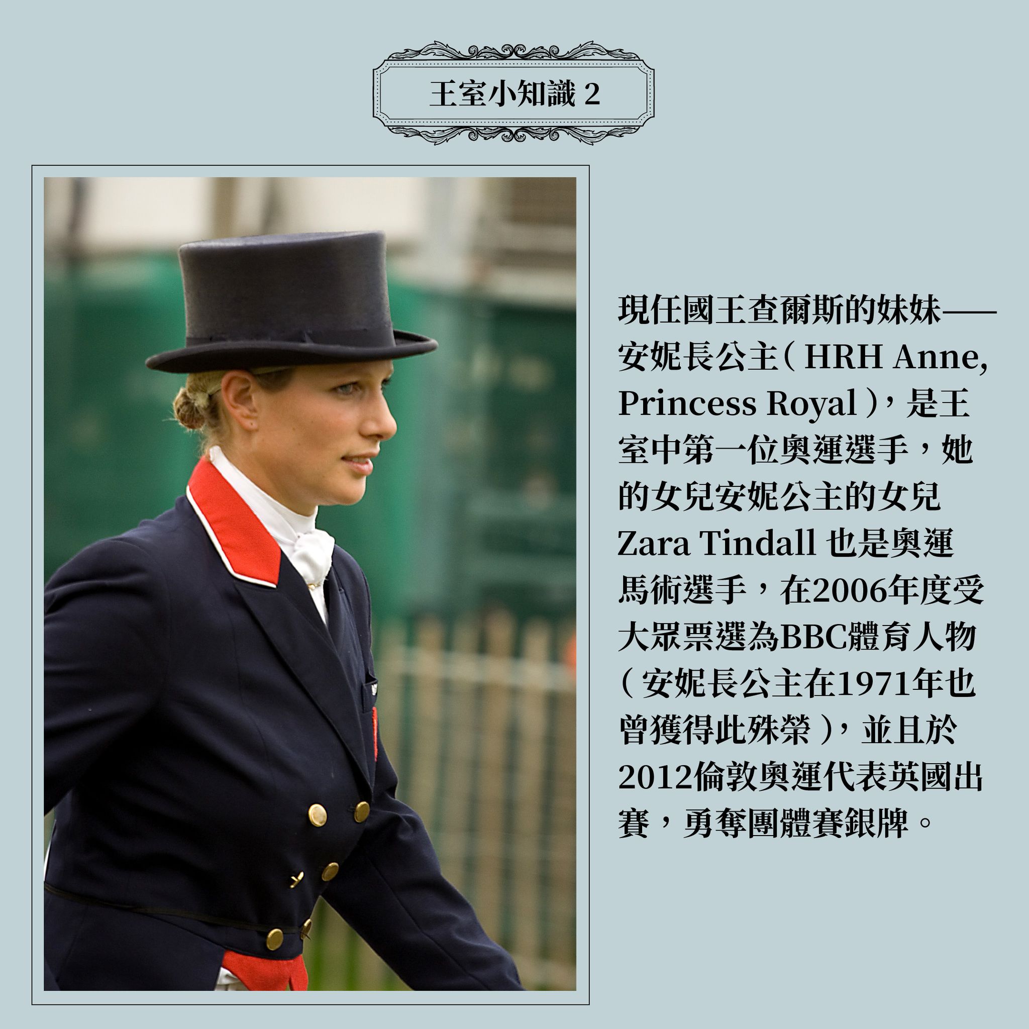 Wendy:安妮長公主。她喜歡馬術,同時也非常盡心盡力的在履行王室職責,非常做自己,是第一個再婚的王室君主後代。