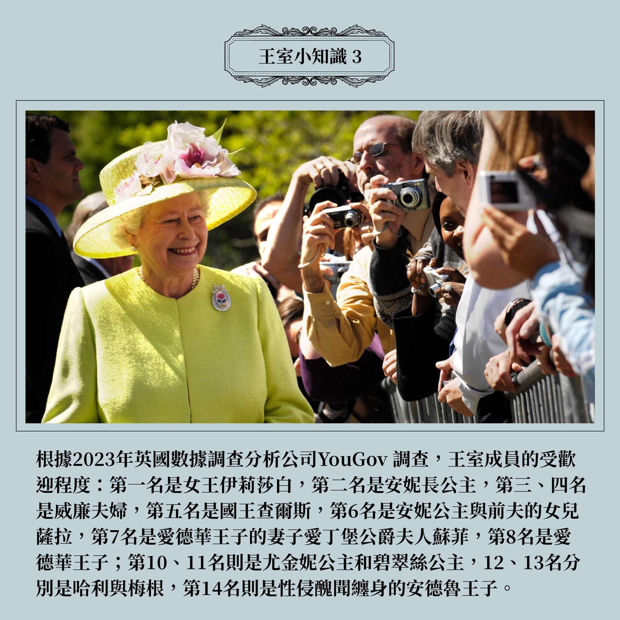 DQ:原來英國皇室之於英國文化有那麼深厚特別的意義!能否請Wendy分享一些英國王室的可愛有趣小知識呢?