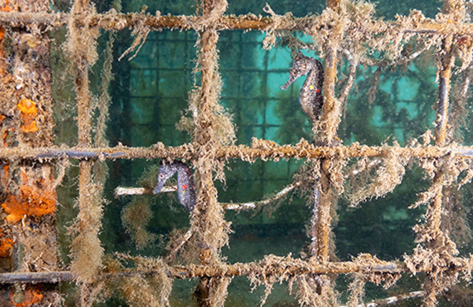 經過將近6個月的飼養,待小海馬平安長大後,研究人員便準備將牠們放回棲地。在野放前幾個月,研究人員先在海底安裝類似廢棄螃蟹陷阱的「海馬旅館」,讓海底的藻類、海綿和其他海洋生物可以附著其上,打造出海馬常見的棲息環境。