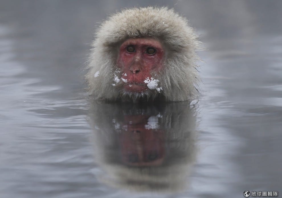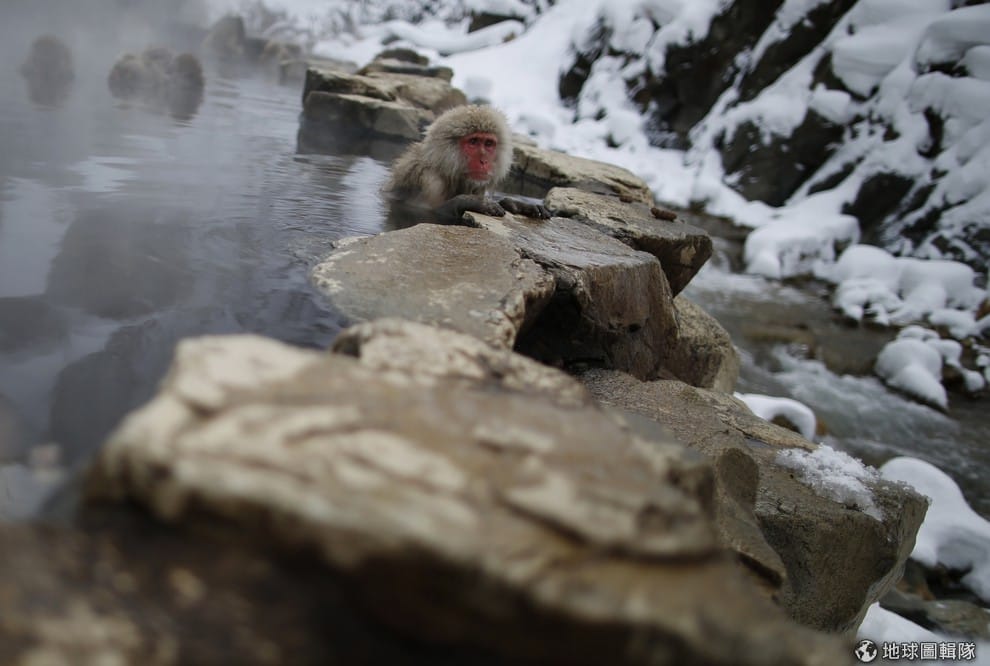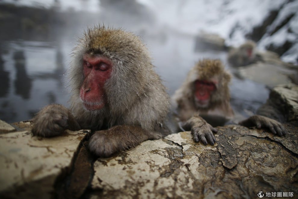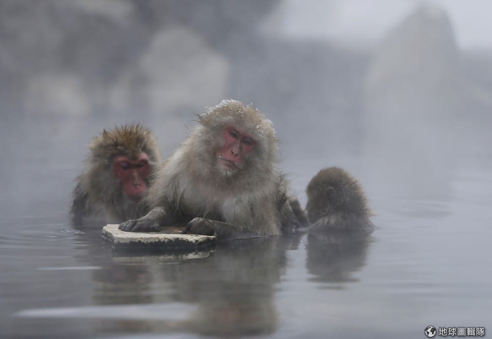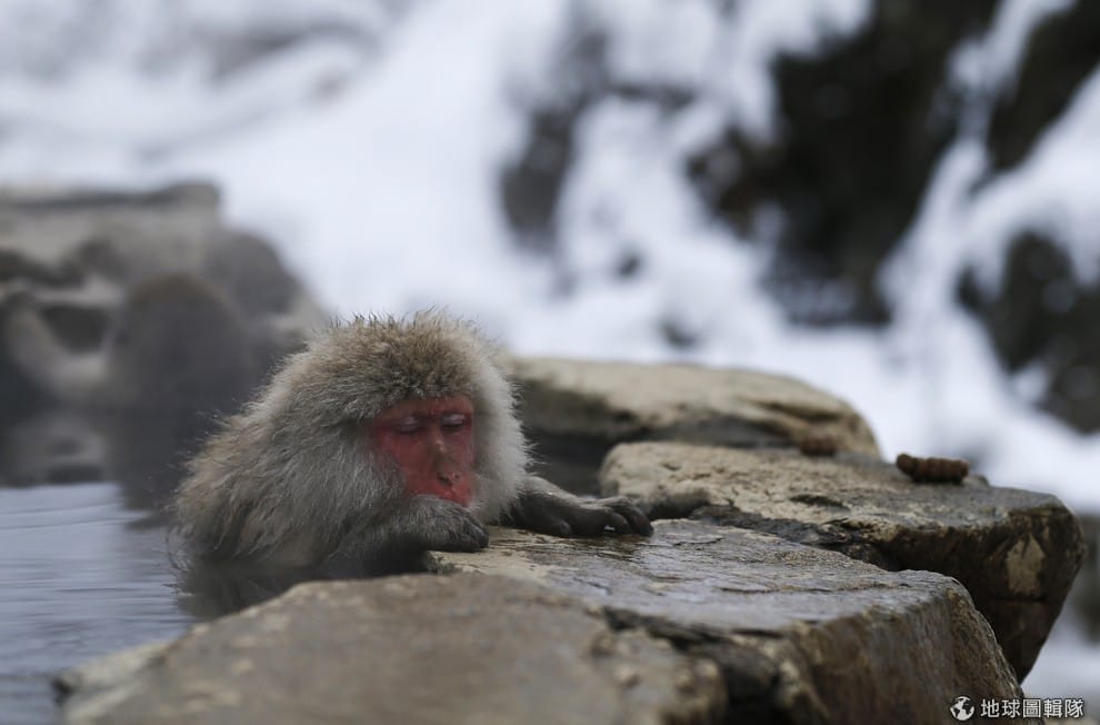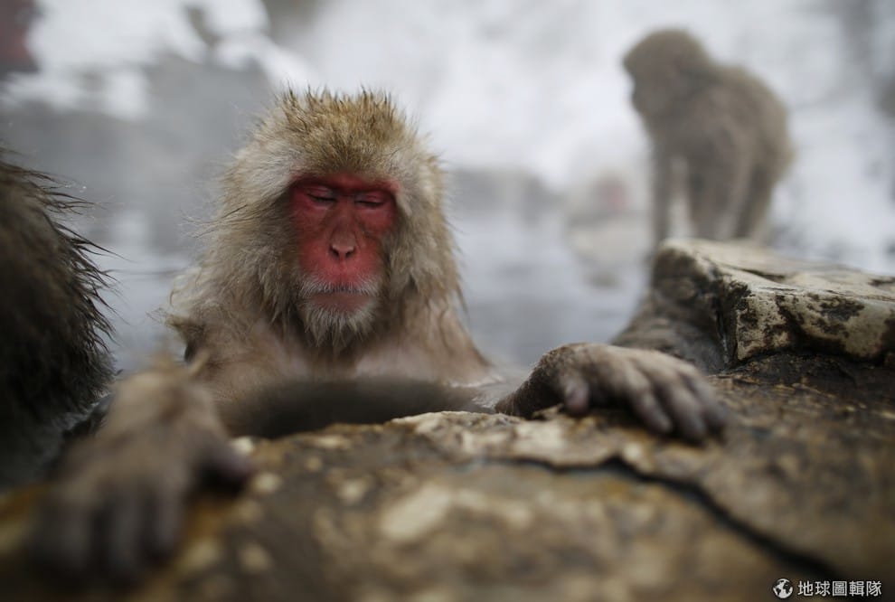 泡進溫泉中的猴子也忍不住出現舒服的表情