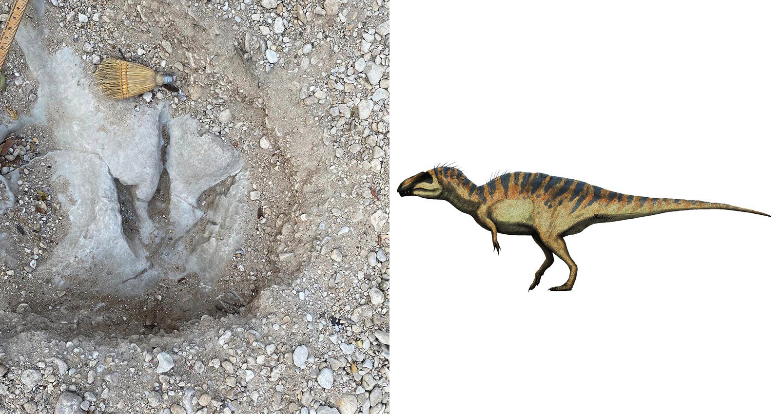 帕拉克西龍的腳印以及示意圖。圖片來源:Dinosaur Valley State Park、Danny Cicchetti