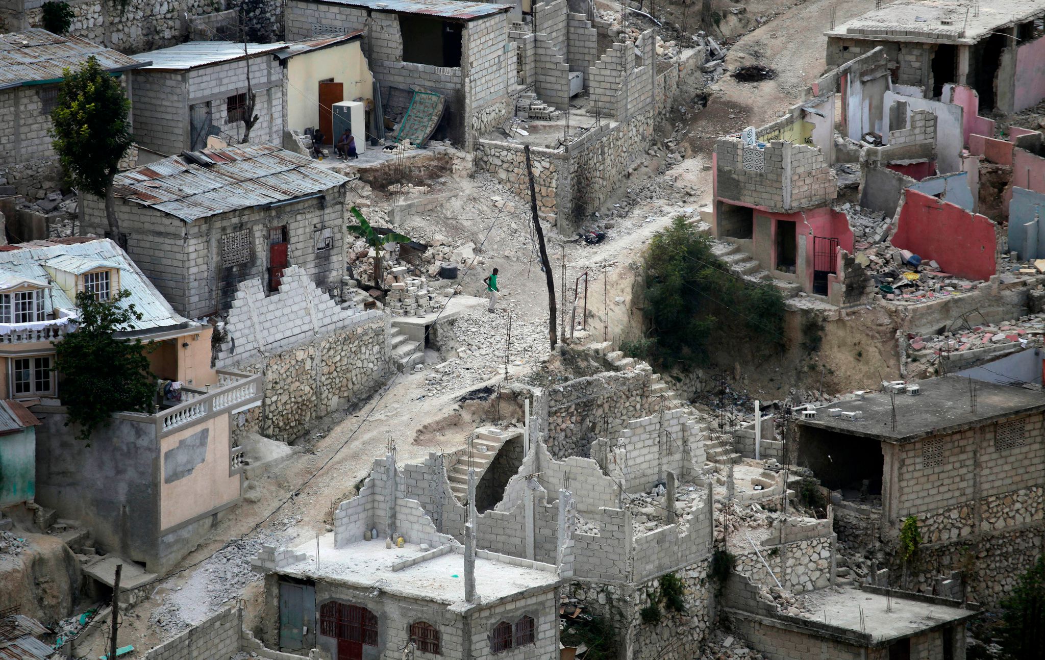 美聯社 / 達志影像null地震後,村民逃離遭嚴重摧殘的家園。
