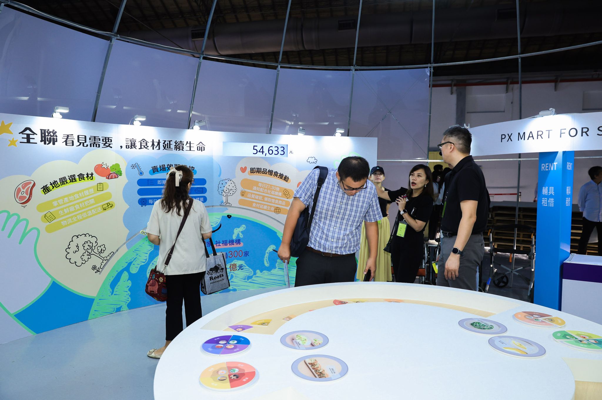 「社宅生活+」展區,攜手多元企業。在室內,邀請宜得利、輔聚企業、電電租及恆隆行Restyle,提供針對獨居老人居家安全偵測跌倒的儀器、適合高齡者運動的器材等,模擬居家情境體驗。