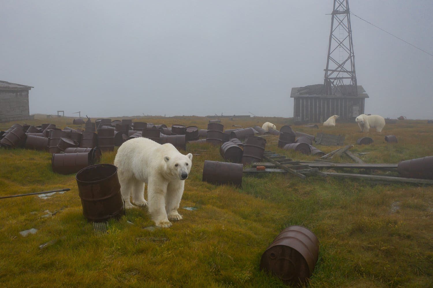 在科赫一群人的視線中,約有20隻北極熊在房屋周圍遊蕩,仔細檢查每個門窗縫隙。科赫說明,他們看見的北極熊多為雄性,雌熊則與幼熊一起待在海岸邊。