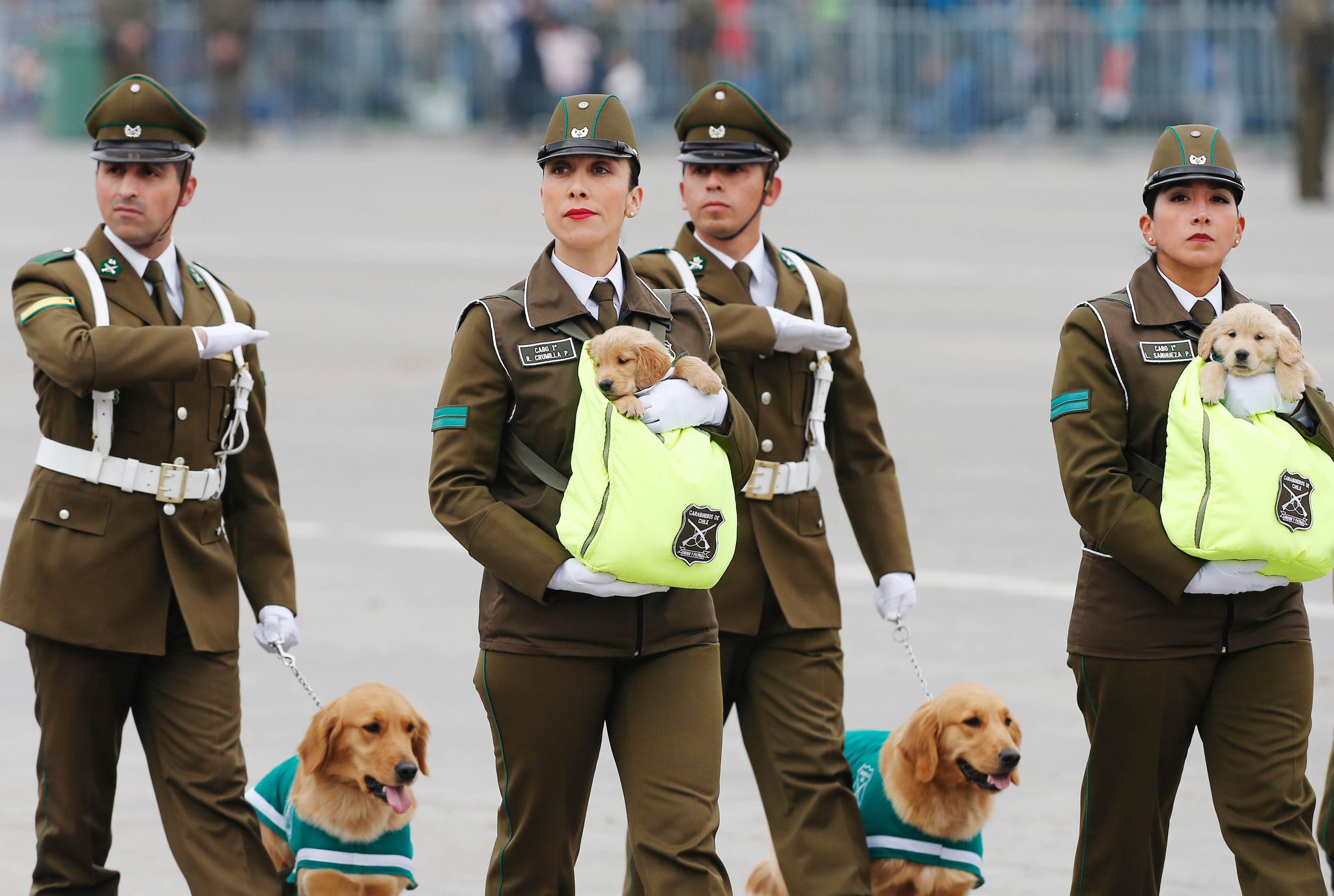 9月18日,智利於一年一度的獨立紀念日舉辦閱兵典禮,典禮中除了有一般人印象中整齊劃一的軍隊行進,還有76隻不同年紀的狗狗一同參與。