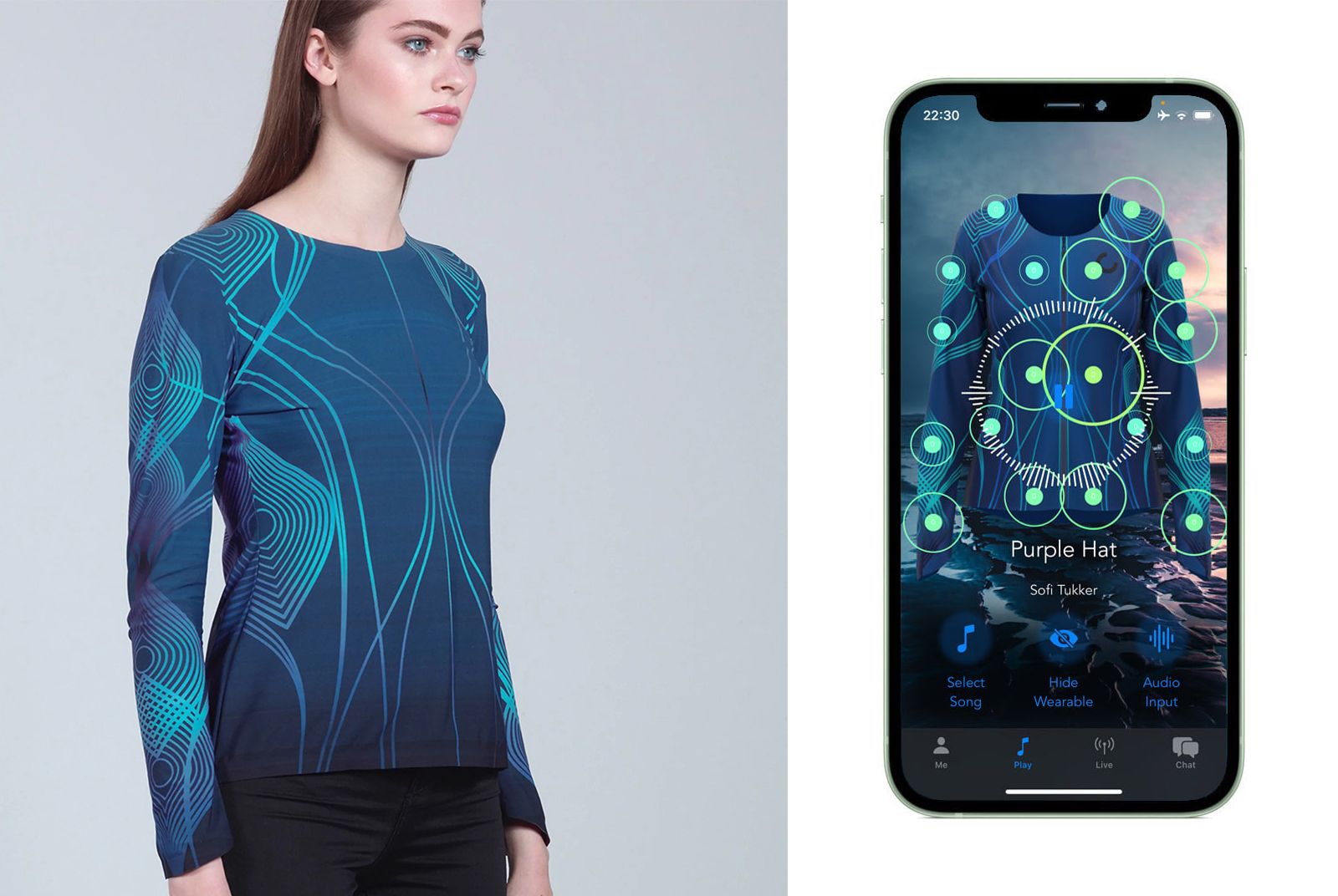 鄧恩回憶,他們2020年2月在倫敦看到這款產品,當時是CuteCircuit公司最新的東西,以輕量化合成材料製作,外觀類似運動衣,零售價格約為1,500美元。試穿之後,他大為驚豔,不料COVID-19隨後襲來,讓投產與上市的時程大為延宕。
