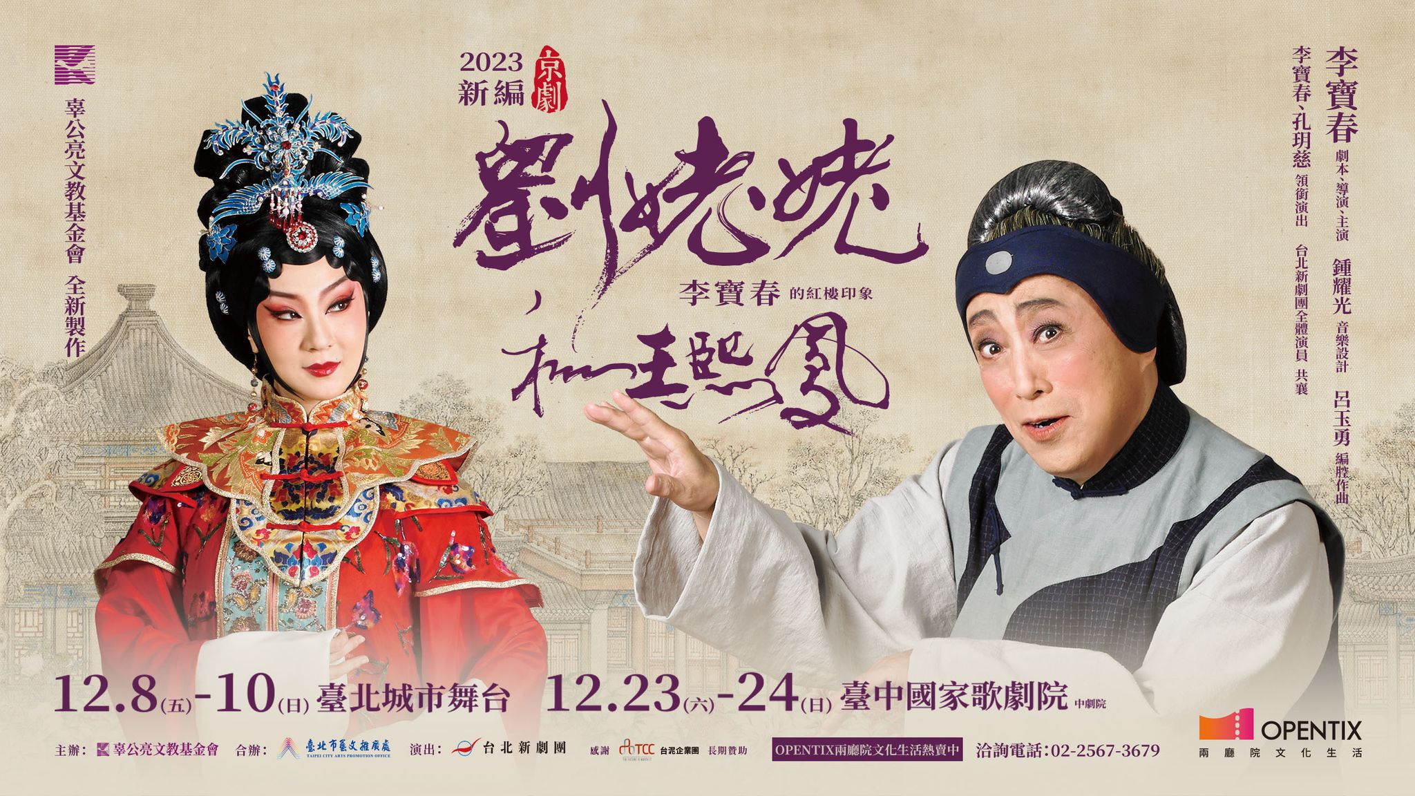 過往的傳統戲曲在內容上多有「忠孝節義、傳統美德」的宗旨輸出,放到現代社會難免沉重。台灣的京劇表演團體自80年代以來便開始進行多方嘗試,力求為百年傳統碰撞出新火花。成立於1997年的台北新劇團,在團長李寶春帶領下,率領一眾青年戲曲演員,以老戲精華為本而增添新意,並維持一致的李氏風格。將於今年底上場的《劉姥姥和王熙鳳》-李寶春的紅樓印象,透過表演者與音樂設計2個新意安排,除了帶來表演形式的突破,也希望給觀眾不一樣的體悟。